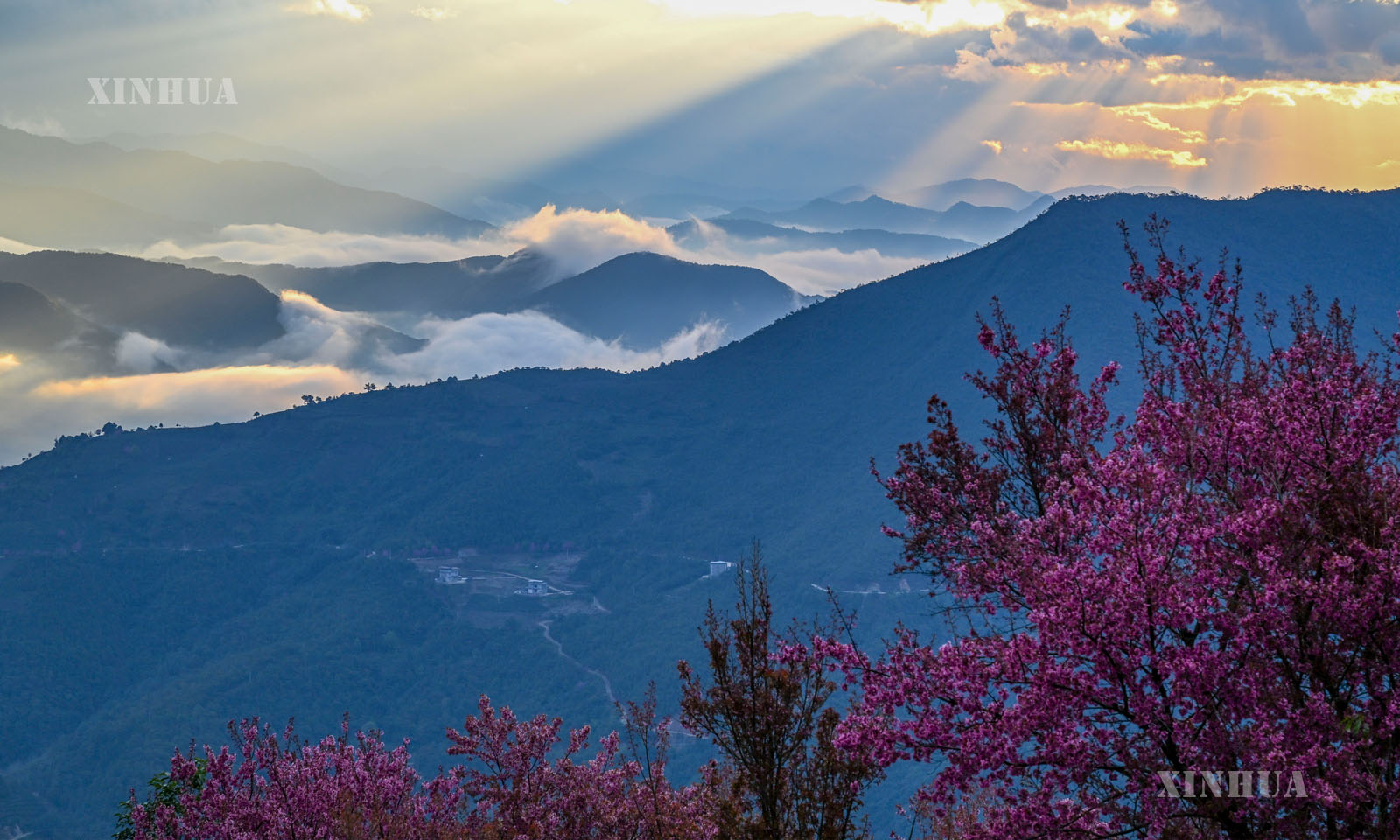 ယူနန်ပြည်နယ် နန်ကျန့်ခရိုင်ရှိ ဝူလျန့်တောင်တွင် ဆောင်းချယ်ရီပန်းများ ပွင့်လန်းလျက်ရှိ