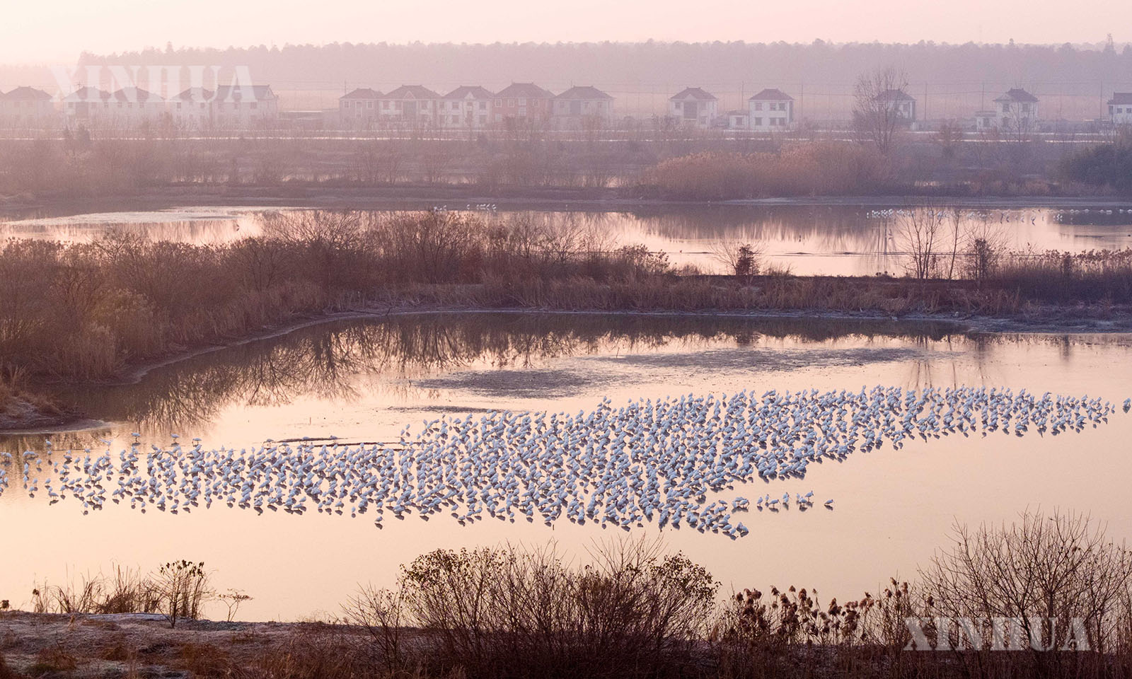 လတ်တလောရက်ပိုင်းတွင် ရွှေ့ပြောင်းနေထိုင်သောငှက်အများအပြားသည် တရုတ်နိုင်ငံ ကျန်းဆူးပြည်နယ် ရှင်းဟွမြို့ လီရှဟယ် အမျိုးသားစိမ့်မြေဥယျာဉ်သို့ ပျံသန်းလာရောက်ပြီး ရေတိမ်သောင်ပြင်များတွင် အုပ်စုဖွဲ့၍ အစာရှာ ခိုနားလျက်ရှိသည်။ လတ်တလောနှစ်ပိုင်းတွင် ဒေသတွင်းဂေဟပတ်ဝန်းကျင် စဉ်ဆက်မပြတ် တိုးတက်ကောင်းမွန်လာရာ ဆောင်းခို ရွှေ့ပြောင်းငှက်အရေအတွက်များ တစ်နှစ်ပြီးတစ်နှစ် တိုးပွားလာခဲ့သည်။ (Xinhua)