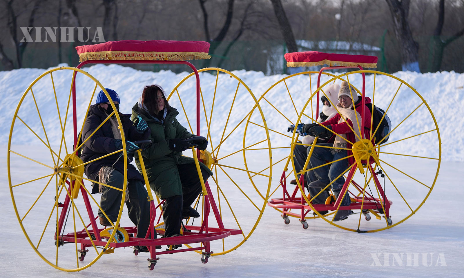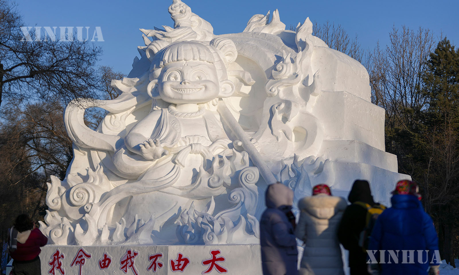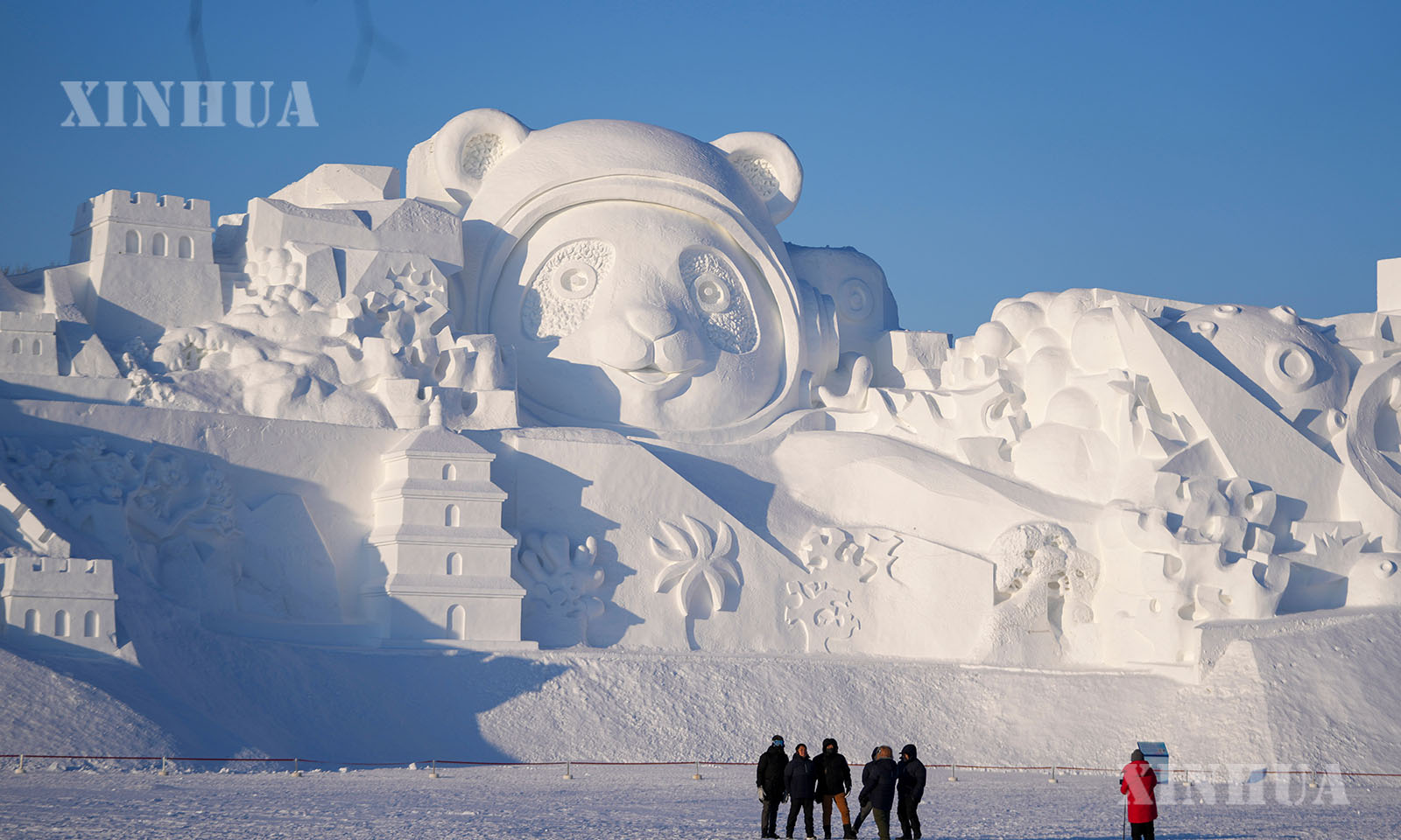 ယခုအချိန်သည် ရေခဲဆီးနှင်း ခရီးသွားလာမှုရာသီချိန်ဖြစ်သည်။ တရုတ်နိုင်ငံ ဟေးလုံကျန်းပြည်နယ် ဟားအယ်ပင်းမြို့တွင် ကျင်းပသော ၃၈ ကြိမ်မြောက် ထိုက်ယန်ကျွန်း နှင်းပန်းပုအနုပညာပြပွဲတွင် ဒဏ္ဍာရီကမ္ဘာလေးအလား လှပသောနေရာကို ရေခဲဆီးနှင်းတို့ဖြင့် တည်ဆောက်ထားရာ “ရေခဲမြို့တော်” ၏ ဆောင်းရာသီပျော်ရွှင်မှုကို ကိုယ်တိုင်ခံစားနိုင်ရန်အတွက် ကမ္ဘာ့ဒေသအသီးသီးမှ ခရီးသွားဧည့်သည်များကို နှင်းပန်းပုရုပ်တုအား ရှုစားရန်၊ ဆီးနှင်းများဖြင့် ဆော့ကစားရန် ဆွဲဆောင်လျက်ရှိသည်။ (Xinhua)