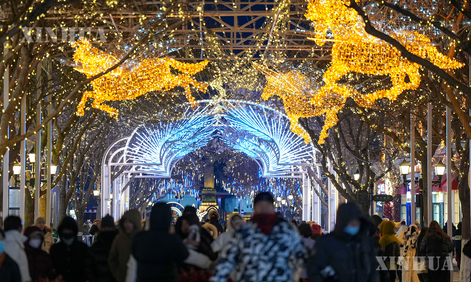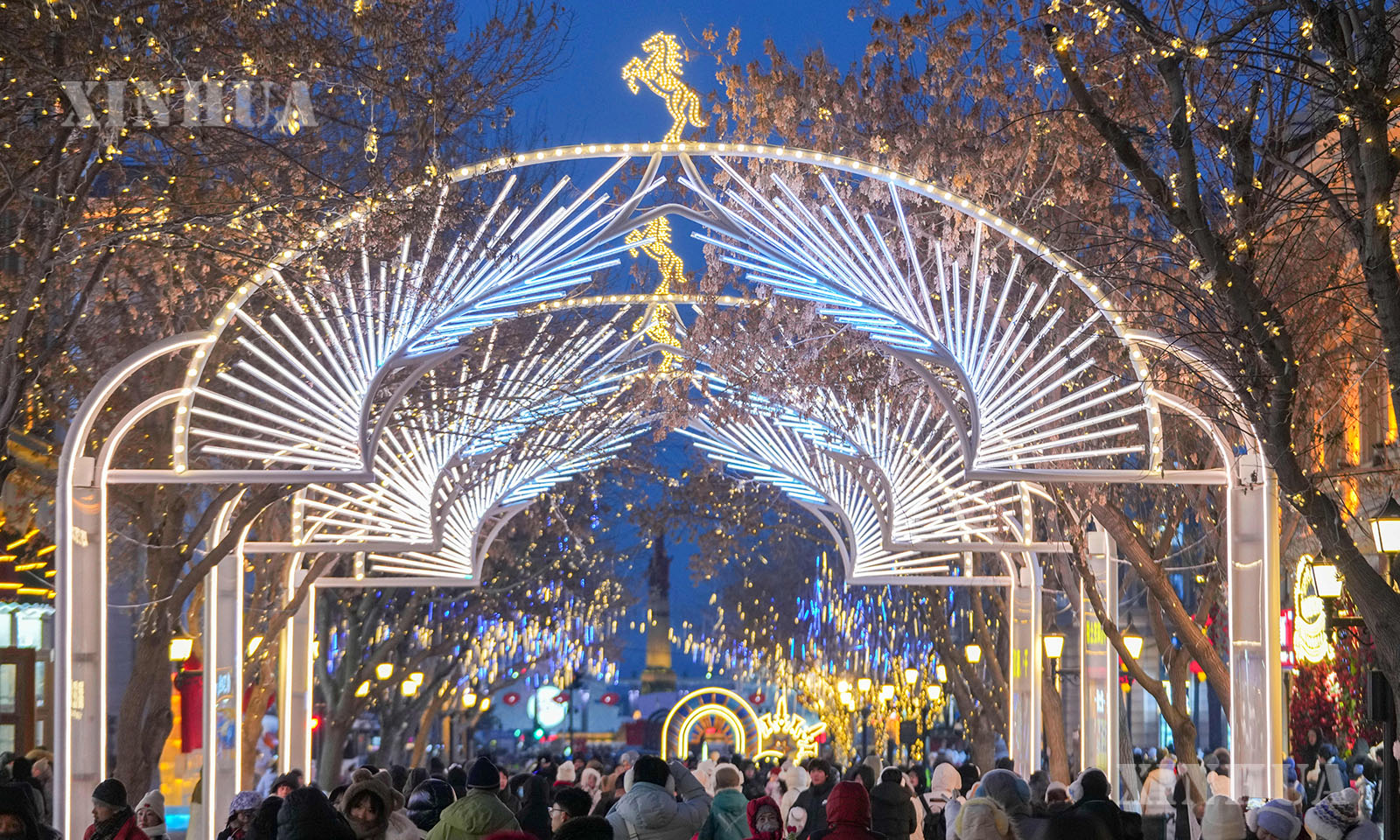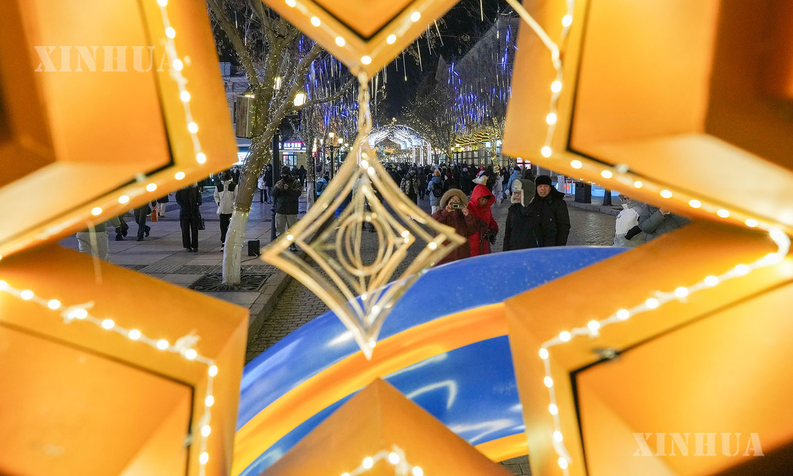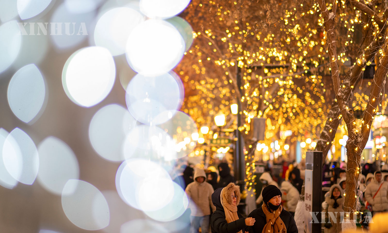 လက်ရှိအချိန်သည် တရုတ်နိုင်ငံ “ရေခဲမြို့တော်” ဟားအယ်ပင်း၏ ရေခဲ၊ ဆီးနှင်း ခရီးသွားကာလဖြစ်သည်။ ညချမ်းအချိန် ရောက်ရှိလာသည့်အခါတွင် နှစ်တစ်ရာလမ်းဟောင်းဖြစ်သည့် ဗဟိုလမ်းမကြီးသည် တောက်ပသည့်လျှပ်စစ်မီးရောင်များဖြင့် ထိန်ထိန်လင်းလျက်ရှိသည်။ ယင်းနေရာတွင် ခရီးသွားဧည့်သည်များက ရွေ့လျားနေသည့် ရေခဲ၊ ဆီးနှင်း အနုပညာစင်္ကြံရှည်ကြီးတွင် လမ်းလျှောက်နေသည့်အလားဖြစ်နေရာ အိမ်ပြန်ရန် မေ့လျော့လောက်အောင်ပင် အမှတ်တရ ဖြစ်စေပေသည်။ (Xinhua)