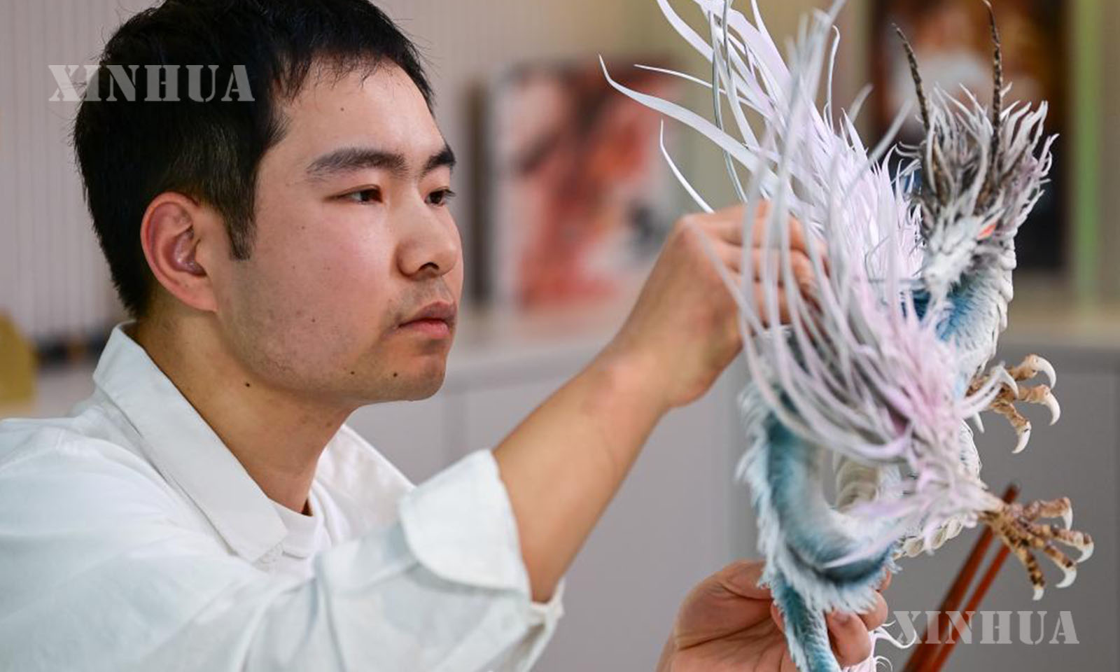 1、糖艺师张勃在制作糖艺作品《山海经应龙》(1月13日摄)。 新华社记者 邹竞一 摄
