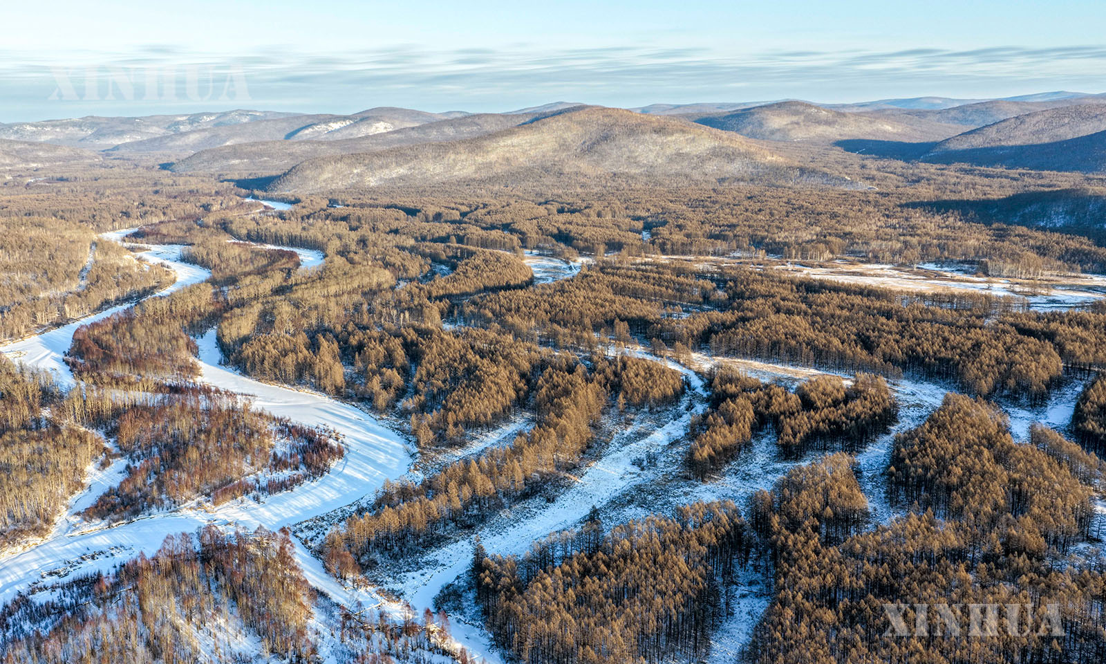 图说1:这是1月15日在根河市拍摄的根河源国家湿地公园景色(无人机照片)。 新华社记者 马金瑞 摄