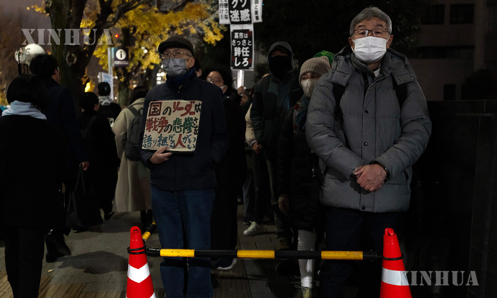 ဂျပန်နိုင်ငံ တိုကျိုမြို့ရှိ ဝန်ကြီးချုပ်အိမ်တော်ပြင်ပ၌ ဆန္ဒပြလှုပ်ရှားမှုတွင် ပါဝင်နေသော ပြည်သူများကို ၂၀၂၅ ခုနှစ် နိုဝင်ဘာ ၂၃ ရက်က တွေ့ရစဉ် (ဆင်ဟွာ)