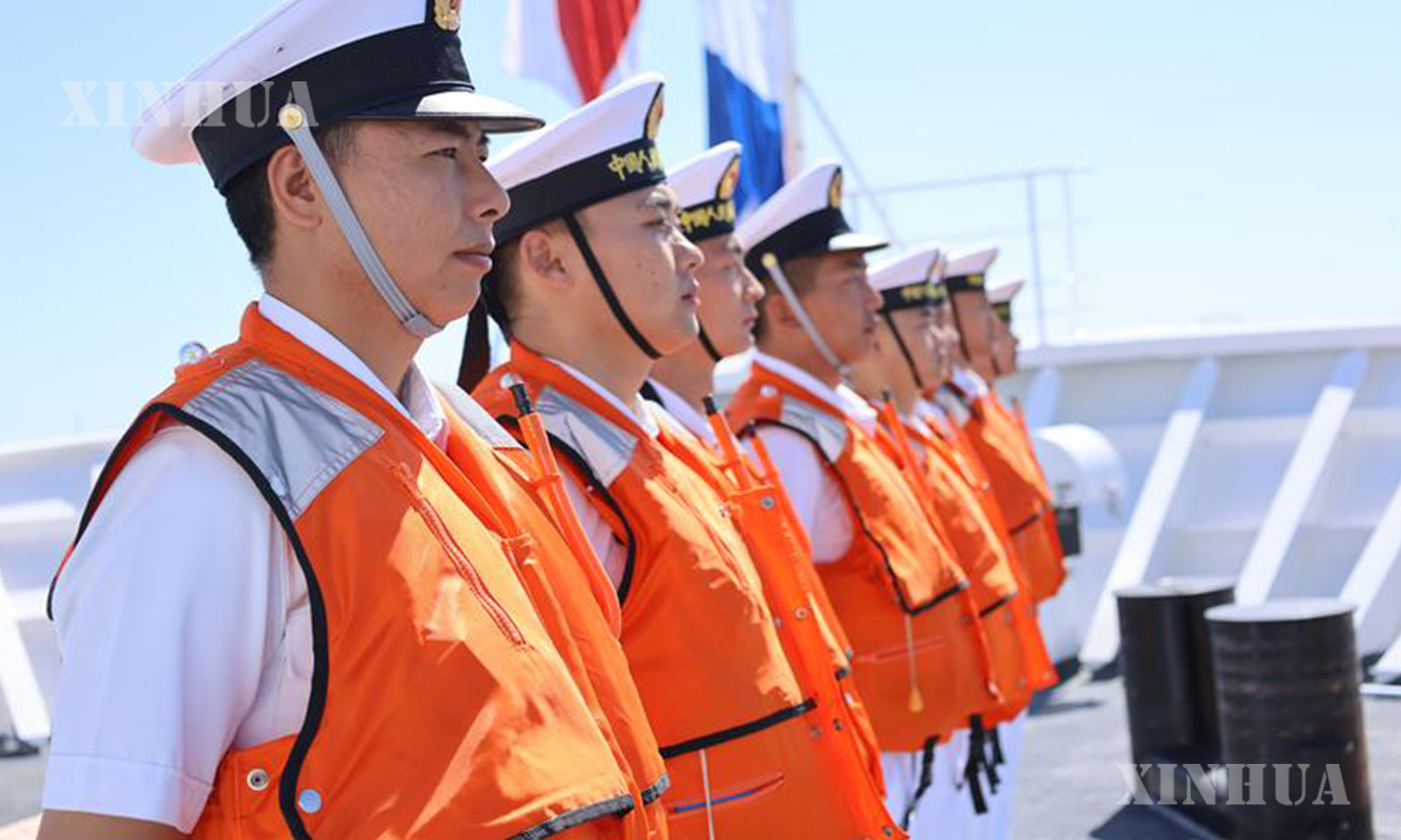 ဥရုဂွေးနိုင်ငံ မွန်တီဗစ်ဒီအိုဆိပ်ကမ်းရှိ တရုတ်ရေတပ် ဆေးရုံသင်္ဘောကြီး “ပိုးလမ်းမသင်္ဘော” ပေါ်တွင် စစ်သည်အရာရှိများ အဖွဲ့လိုက်တန်းစီနေသည်ကို ၂၀၂၆ ခုနှစ် ဇန်နဝါရီ ၂၀ ရက်က တွေ့ရစဉ် (ဆင်ဟွာ)