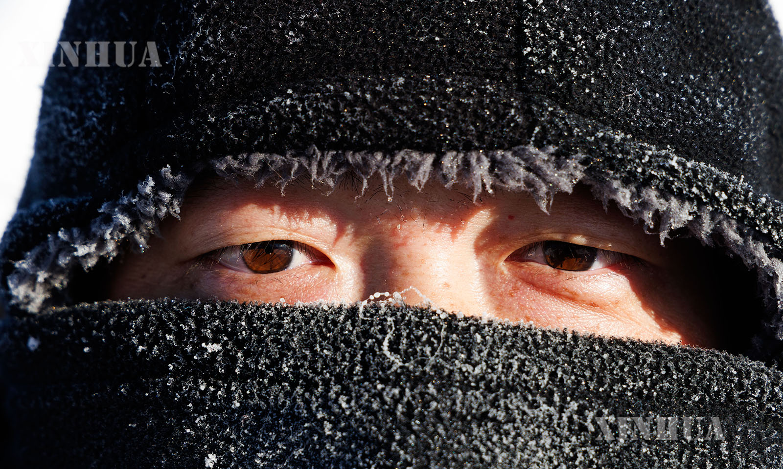 图说1:1月25日,户外作业不久,漠河站的工程师李强的帽子已凝结白霜。 新华社记者 金立旺 摄
