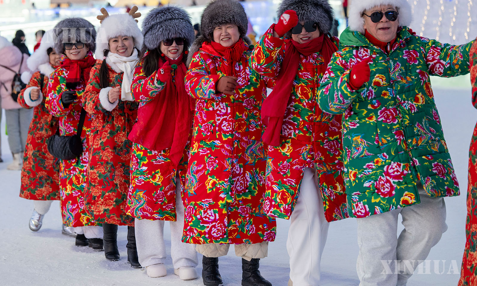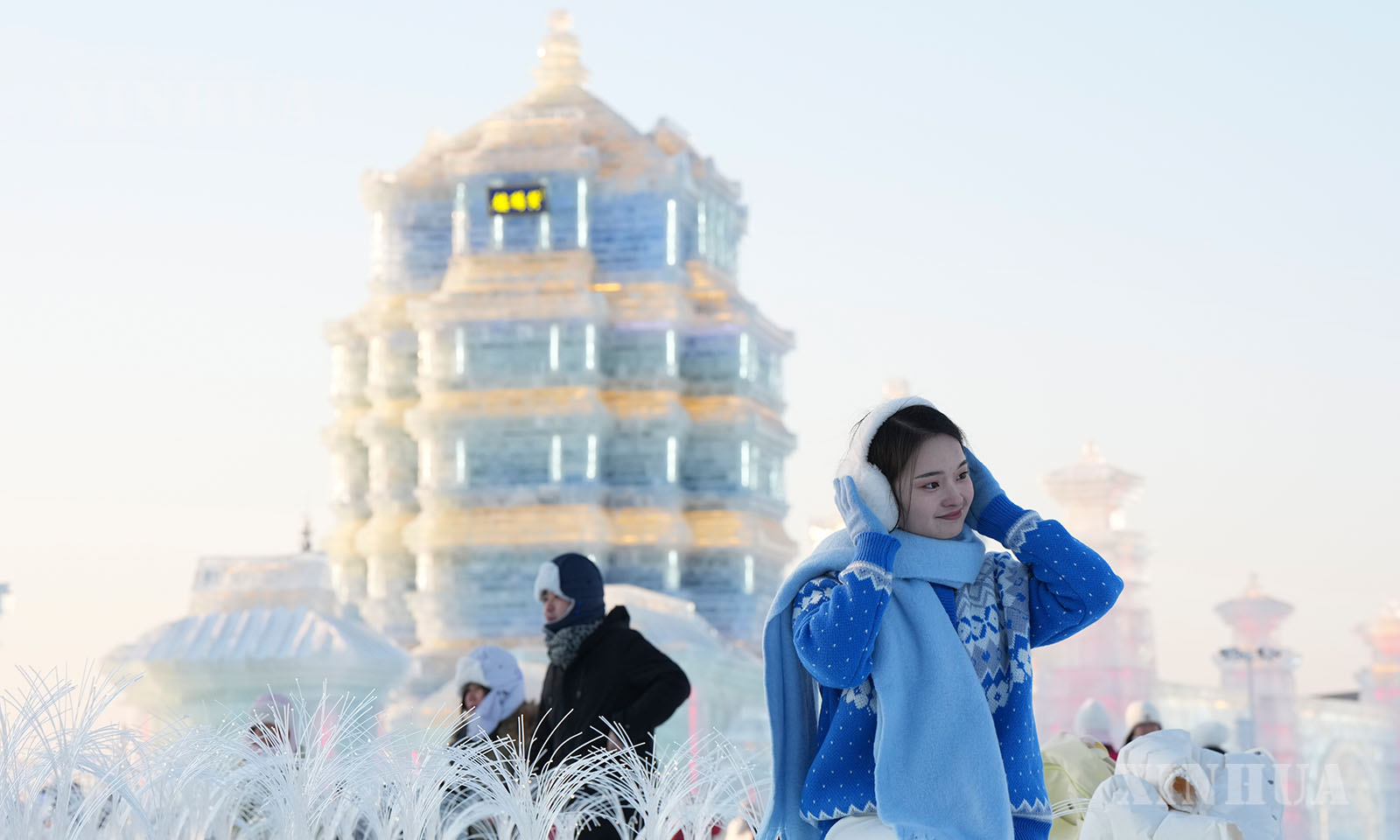 တရုတ်နိုင်ငံ ဟေးလုံကျန်းပြည်နယ် ဟားအယ်ပင်းမြို့ရှိ ဟားအယ်ပင်း ရေခဲဆီးနှင်းကမ္ဘာ ဥယျာဉ်အတွင်း အမှတ်တရဓာတ်ပုံ ရိုက်ကူးနေသူများကို ၂၀၂၆ ခုနှစ် ဇန်နဝါရီ ၅ ရက်က တွေ့ရစဉ် (ဆင်ဟွာ)