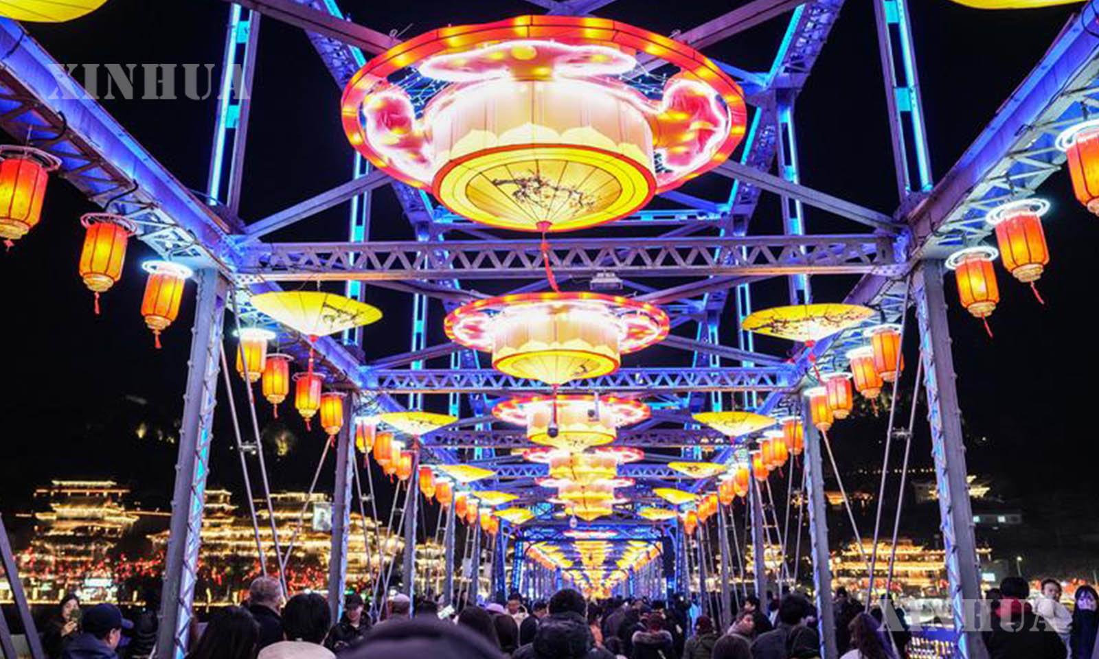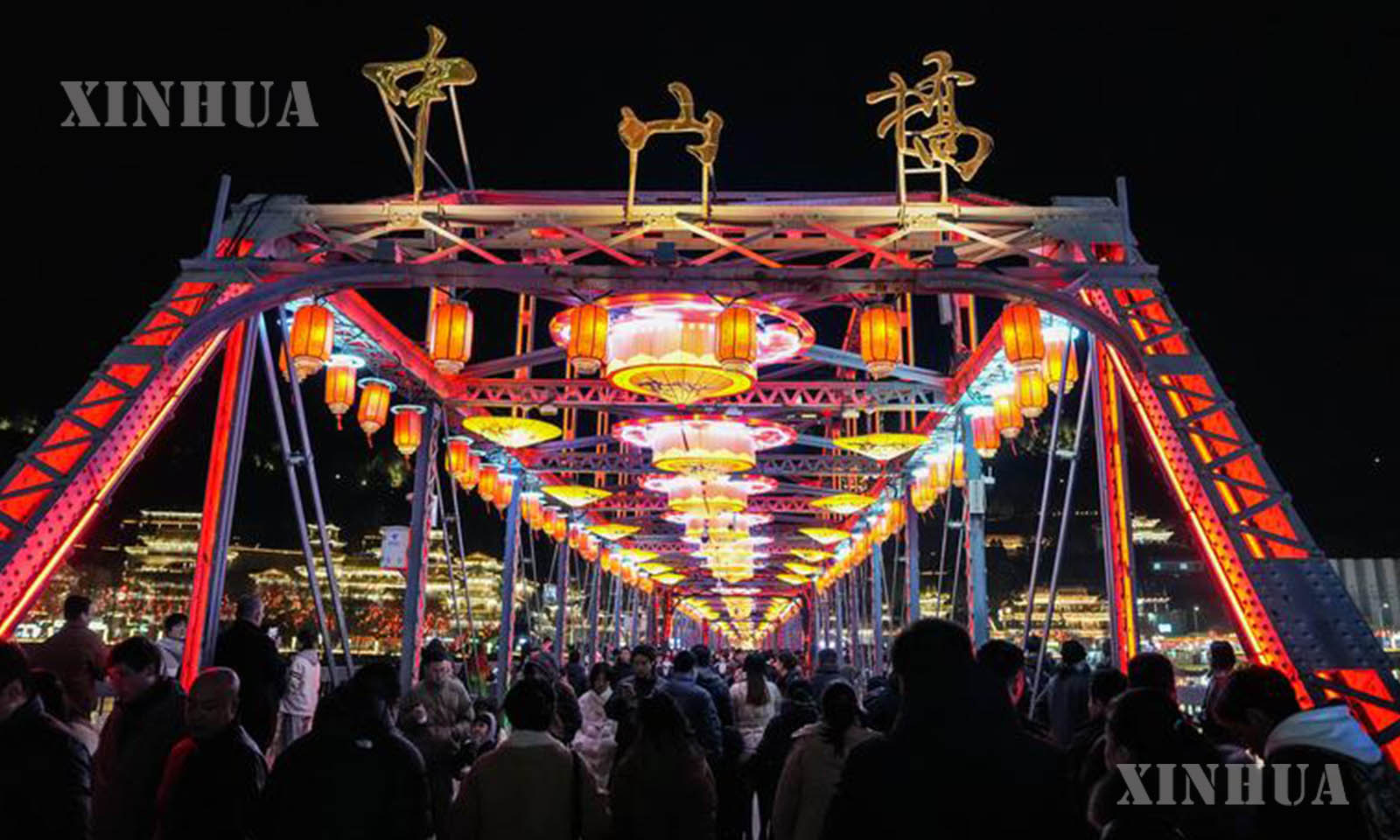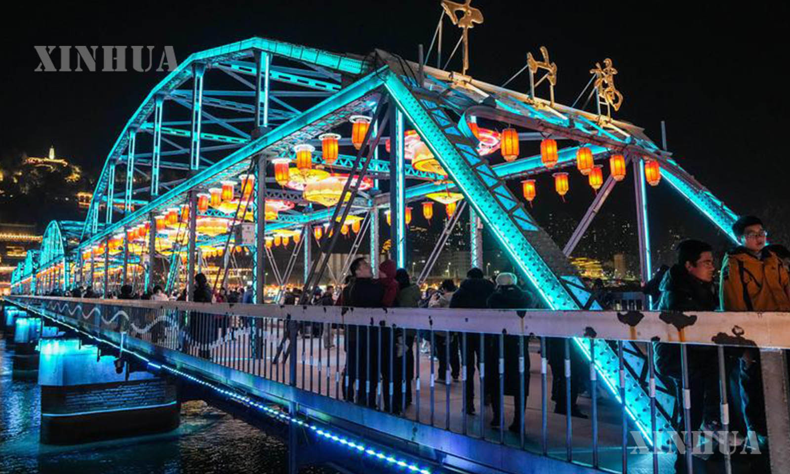 တရုတ်နိုင်ငံ ကန်းစုပြည်နယ် လန်ကျိုးမြို့ရှိ လန်ကျိုး မြစ်ဝါမြစ်သံတံတားဖြစ်သော ကျုံးဆန်းတံတား၊ တုန်းဖောင်းဟုန်ရင်ပြင် စသည့် မြို့ပြအထင်ကရနေရာများနှင့် မြို့တွင်းအဓိကလမ်းမများတွင် အလှဆင်မီးများအား တရားဝင်စတင် ထွန်းလင်းခဲ့ရာ ပွဲတော်၏အေးချမ်းသာယာ၍ မင်္ဂလာရှိသော အငွေ့အသက်ကို ဖန်တီးထားသည်။ (Xinhua)