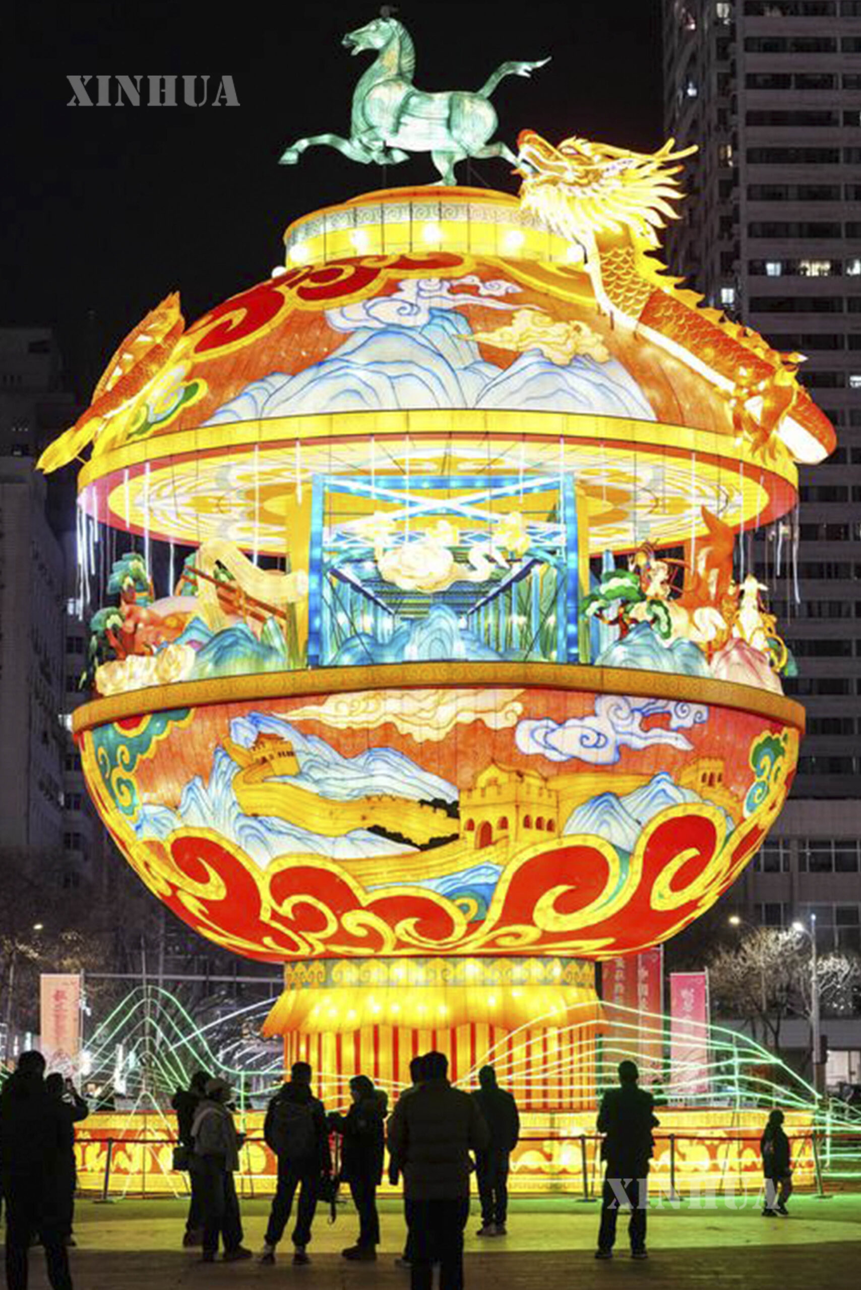 1. 这是2月10日在兰州市城关区东方红广场拍摄的“龙马精神”主题大型灯组。