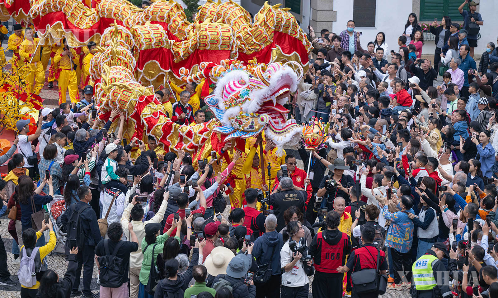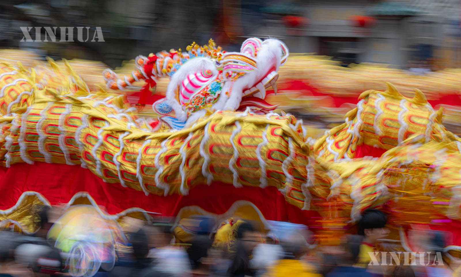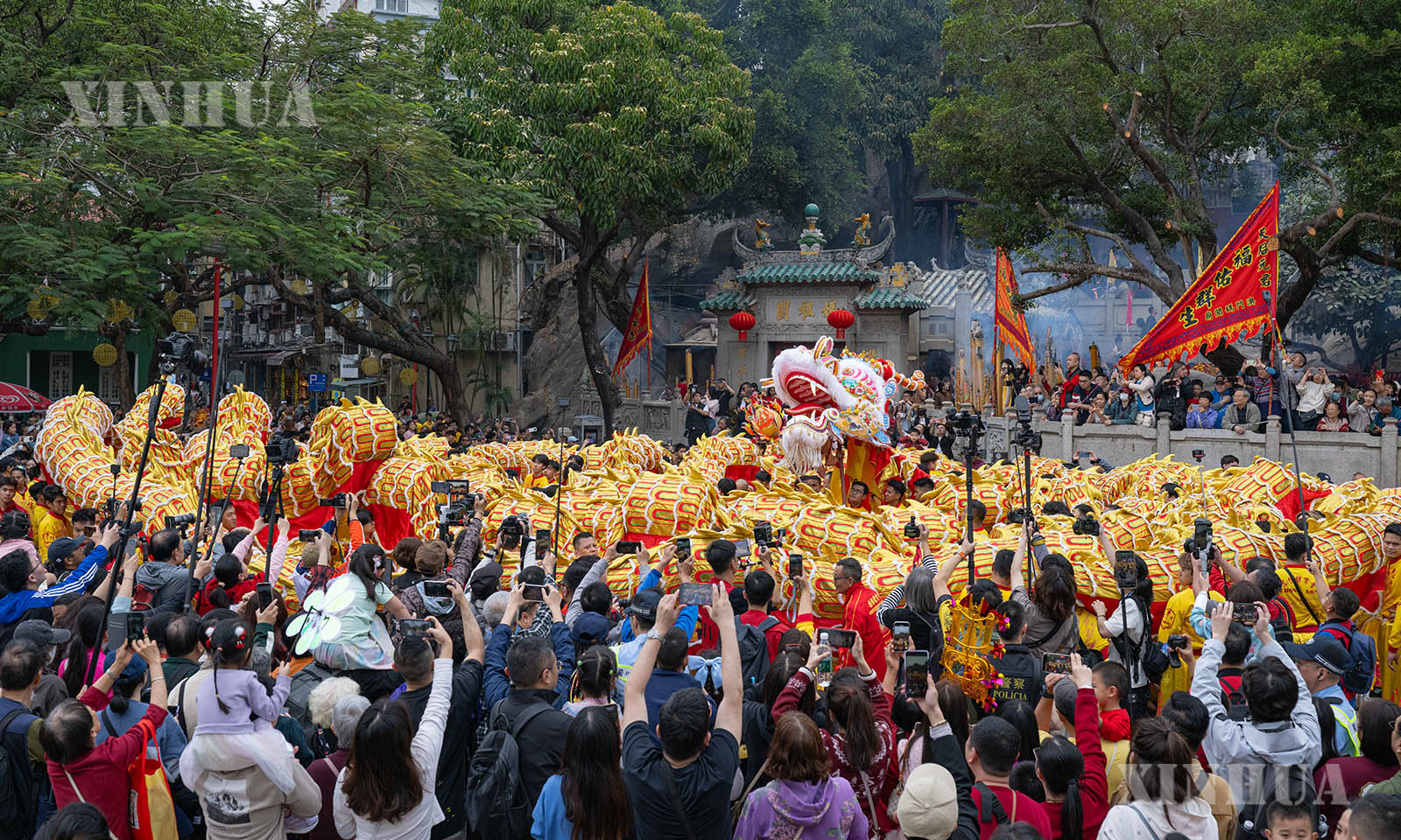 တရုတ်နိုင်ငံ မကာအိုအထူးအုပ်ချုပ်ခွင့်ရဒေသ ရှင်းမာလမ်းတွင် ဖျော်ဖြေနေကြသော နဂါးအကအဖွဲ့အား ၂၀၂၆ ခုနှစ် ဖေဖော်ဝါရီ ၁၇ ရက်က တွေ့ရစဉ် (ဆင်ဟွာ)