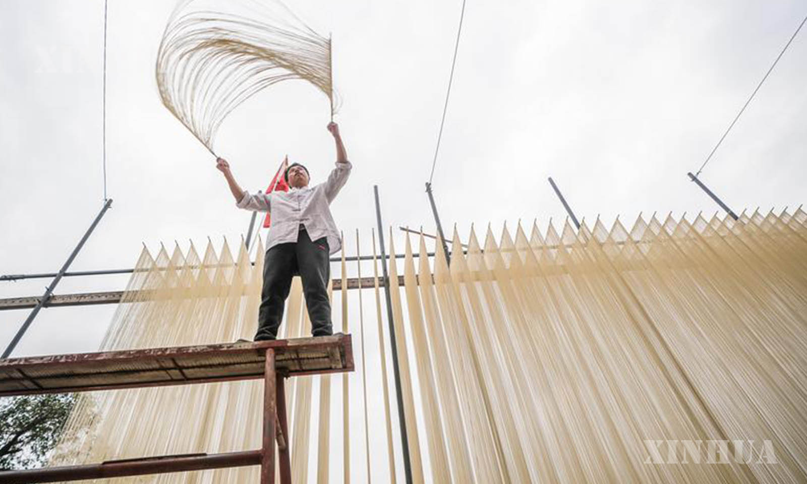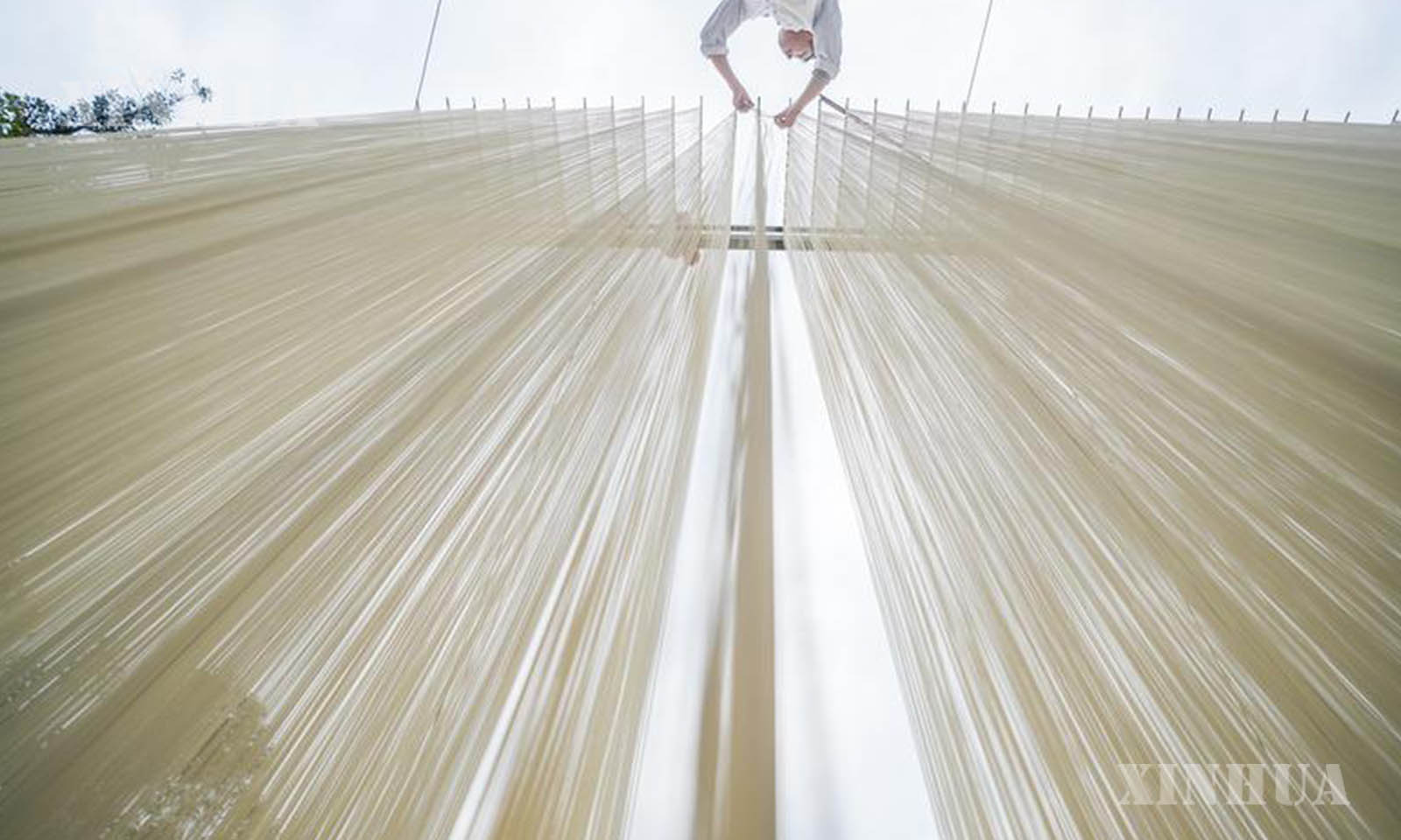 1. 2月22日,在四川省德阳市中江县觉慧村,村民在晾晒手工面条。新华社发(罗大富 摄)