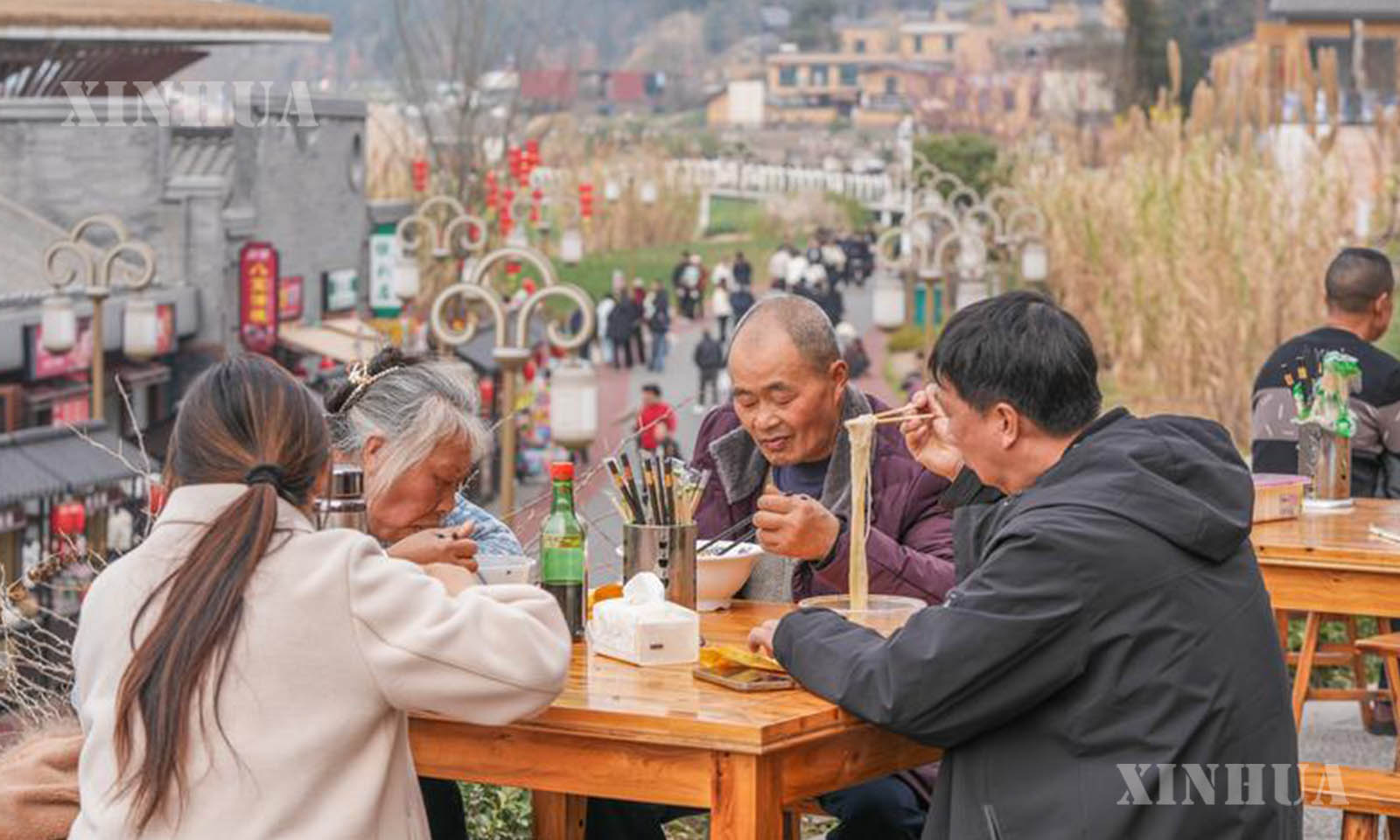 တရုတ်နိုင်ငံ စီချွမ်းပြည်နယ် တယ်ယန်မြို့ ကျုံးကျန်းခရိုင် ကြွယ်ဟွေ့ကျေးရွာရှိ ကျေးရွာသူ၊ ကျေးရွာသားများသည် ရာသီဥတုသာယာသည့် နေသာခိုက်တွင် လက်လုပ်ဂျုံခေါက်ဆွဲခြောက်များကို နေ့စဉ်ရက်ဆက် အပြိုင်အဆိုင်ပြုလုပ်နေကြသည်။