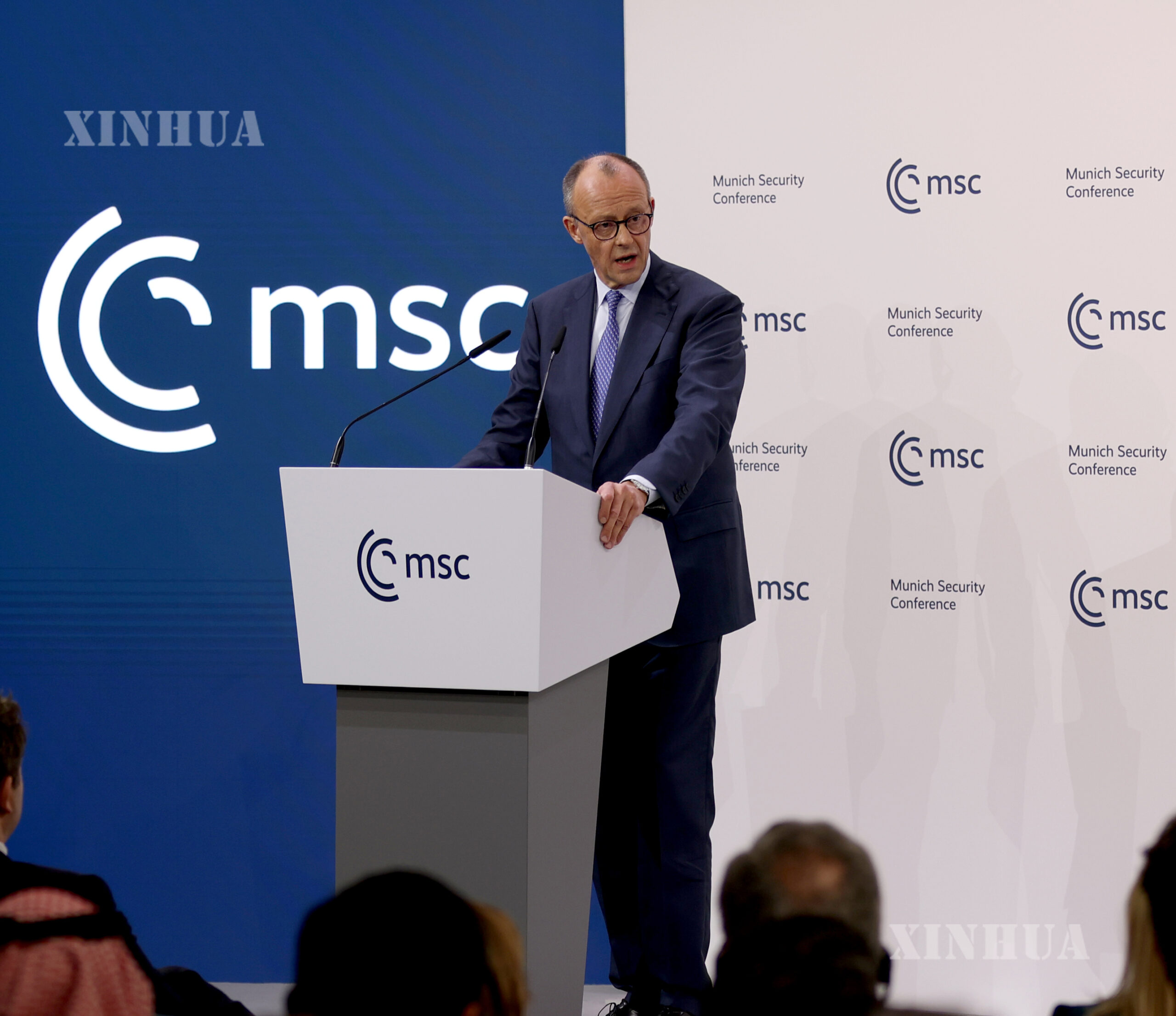 图说:2月13日,在德国慕尼黑,德国总理默茨在第62届慕尼黑安全会议(慕安会)开幕式上致辞。新华社记者 李颖 摄