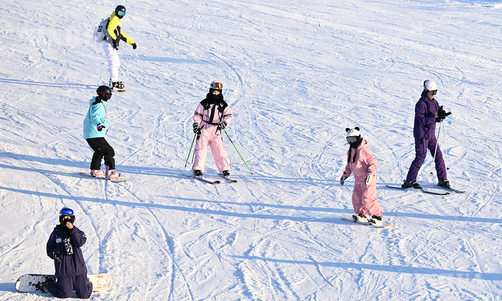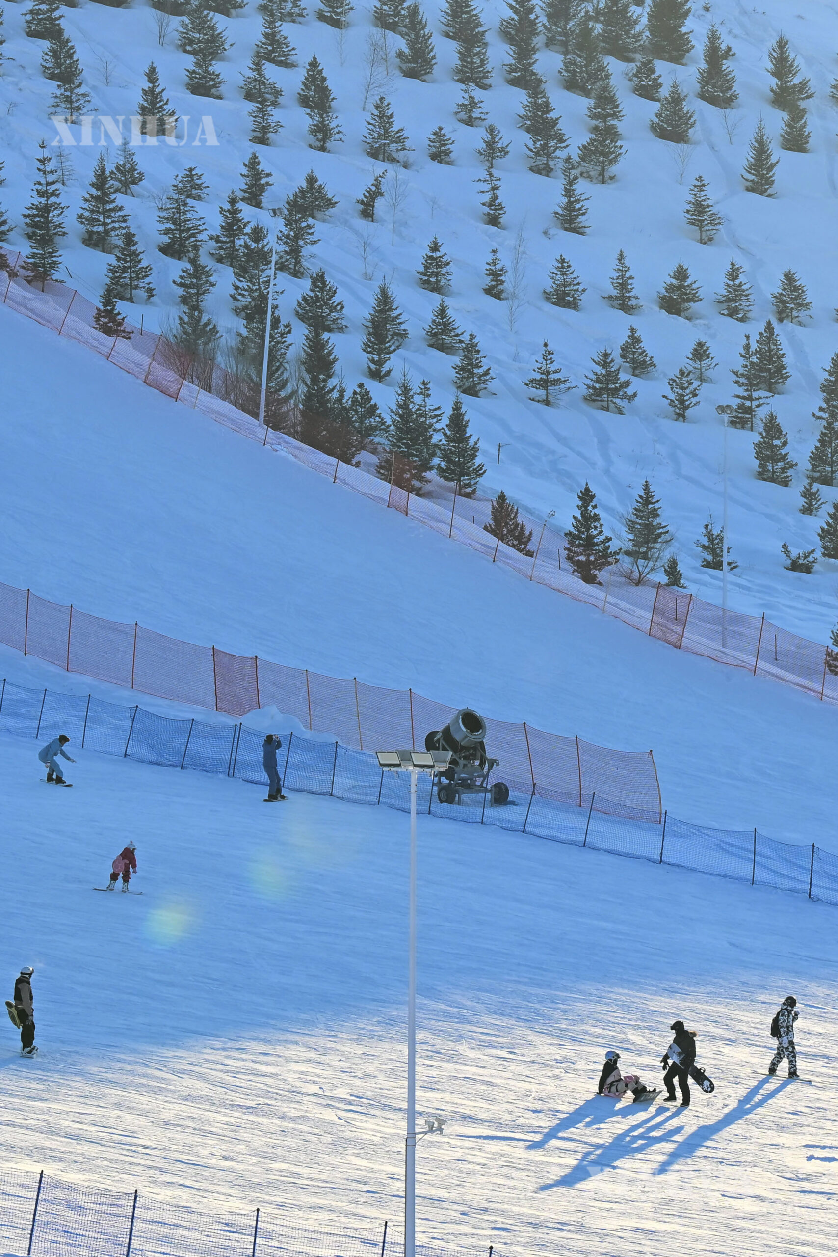 နှင်းလျှောစီးဝါသနာရှင်များသည် ဤနေရာတွင် လွတ်လပ်စွာ အပြည့်အဝ ကစားကြပြီး ရေခဲဆီးနှင်းက ပေးသော ပျော်ရွှင်စိတ်ဝင်စားဖွယ်ရာများကို ခံစားကြခြင်း ဖြစ်သည်။ (Xinhua)