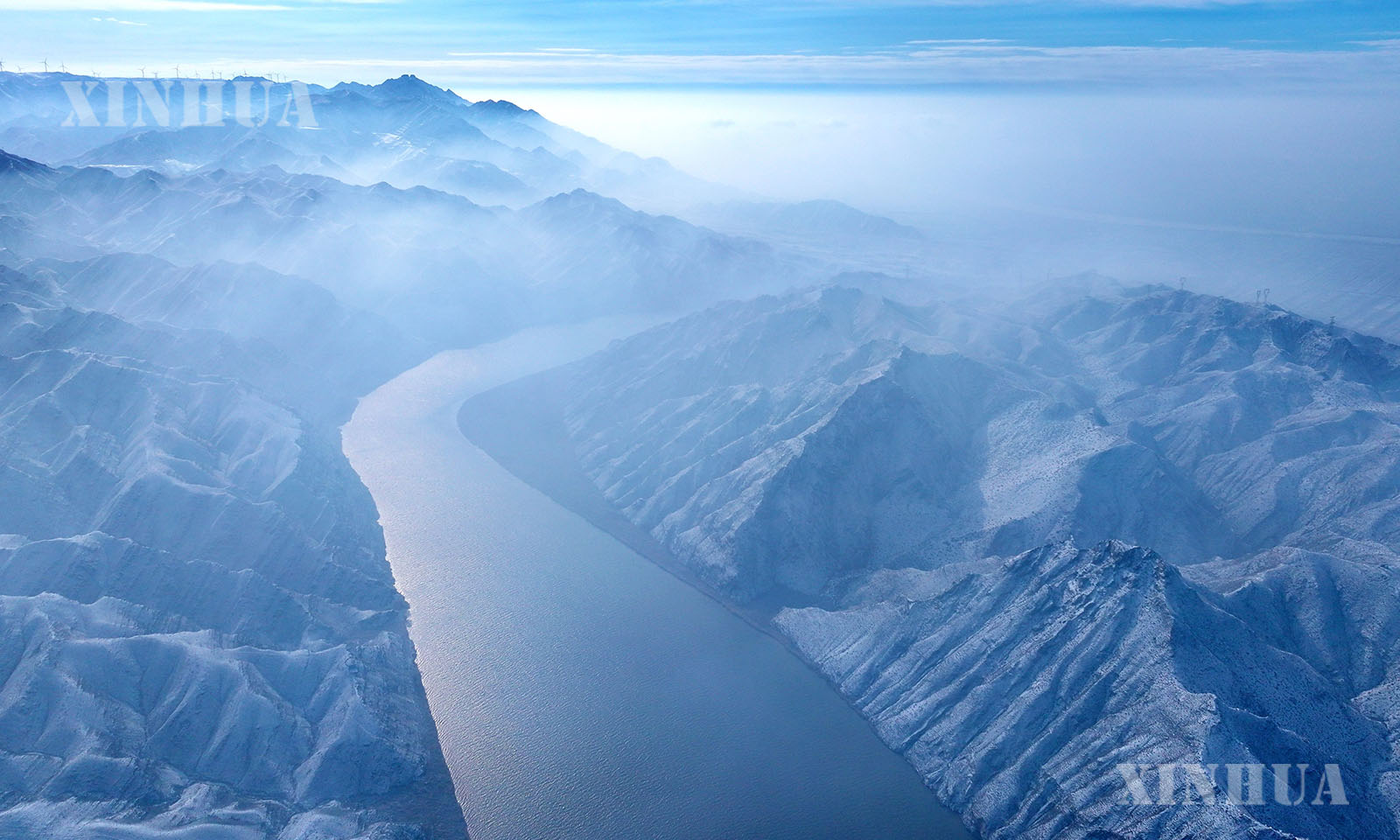 နှင်းများထူထပ်စွာကျဆင်းပြီးနောက် တရုတ်နိုင်ငံ နင်းရှဒေသ၊ ချင်းထုန်ရှာခရိုင်အဆင့်မြို့ရှိ မြစ်ဝါမြစ် လျိုမြောင်ချိုင့်ဝှမ်းသည် ငွေရောင်များဖြင့် ဖုံးလွှမ်းနေသည်။ နှစ်ဖက်ရှိ တောင်တန်းများသည် အဖြူရောင်နှင်းများတွင် အပြန်အလှန် ထင်ဟပ်နေပြီး မြစ်ဝါမြစ်ရေသည် လျှိုမြောင်ချိုင့်ဝှမ်းကို ဖြတ်ကျော်၍ ကွေ့ကောက်စွာစီးဆင်းလျက်ရှိရာ ဆောင်းရာသီ ကြီးကျယ်ခမ်းနားသော ရှုခင်းများကို ဖြစ်ပေါ်လာသည်။ (Xinhua)