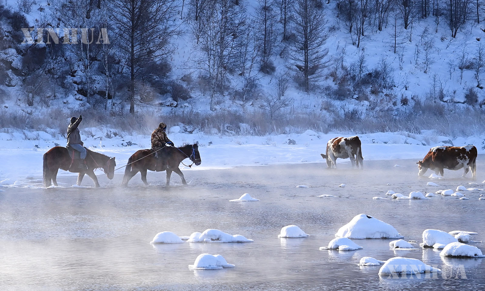 ဟားလားဟားမြစ်သည် တရုတ်နိုင်ငံ အတွင်းမွန်ဂိုလီးယားဒေသ ရှင်းအန်းမုန် အားအယ်ဆန်းမြို့၌ တည်ရှိသည်။ မြေအောက်ရေပူစမ်းရေဖြည့်တင်းမှု၏ သက်ရောက်မှုကြောင့် အချို့သောမြစ်အပိုင်းသည် အေးခဲလှသော ဆောင်းရာသီအချိန်တွင်ပင် ရေမခဲဘဲ ကျန်ရှိနေသည်။ နှစ်သစ်ကူးအားလပ်ရက်ကာလတွင် ထူထပ်လှသော မြူခိုးများကြားရှိ ရေမခဲမြစ်သည် ခရီးသွားဧည့်သည်အများအပြား လာရောက် အပန်းဖြေလည်ပတ်ရင်း အေးခဲလှသောဒေသတွင် ရှင်သန်စွမ်းအားနှင့် သက်ဝင်လှုပ်ရှားမှုများကို ခံစားရန် ဆွဲဆောင်လျက်ရှိပေသည်။ (Xinhua)