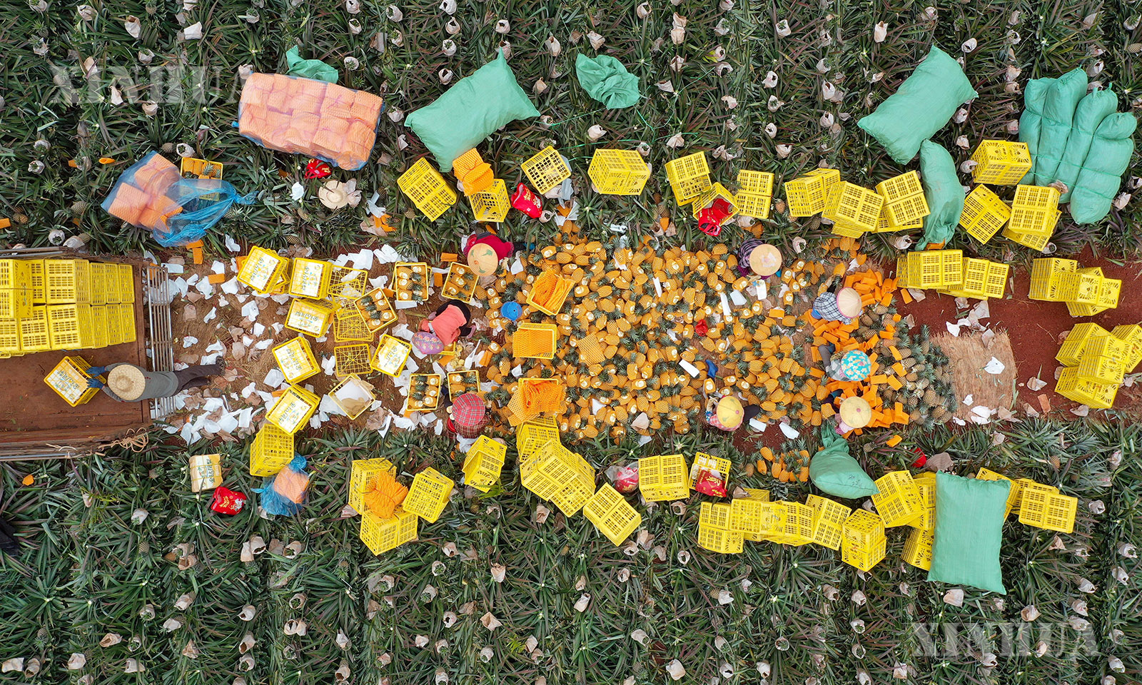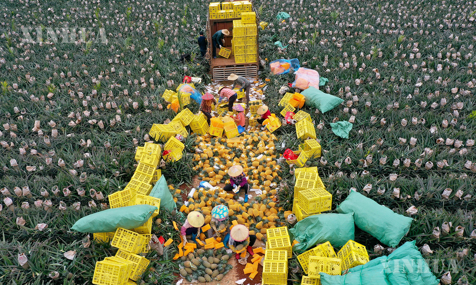 လတ်တလောကာလတွင် တရုတ်နိုင်ငံ ဟိုင်နန်ပြည်နယ် ဟိုင်ခိုမြို့ ချုံဆန်းခရိုင် တာ့ဖောမြို့နယ်ရှိ ကျင်းကျွမ့် နာနတ်သီးစိုက်ပျိုးရေးစခန်း၌ တစ်စုတစ်စည်းတည်း ရိတ်သိမ်းကာလသို့ ရောက်ရှိလာရာ ဒေသခံတောင်သူများက စိုက်ပျိုးရေးအချိန်တွင် နာနတ်သီးများ ဆွတ်ခူးရန် အလုပ်များလျက်ရှိသည်။ (Xinhua)