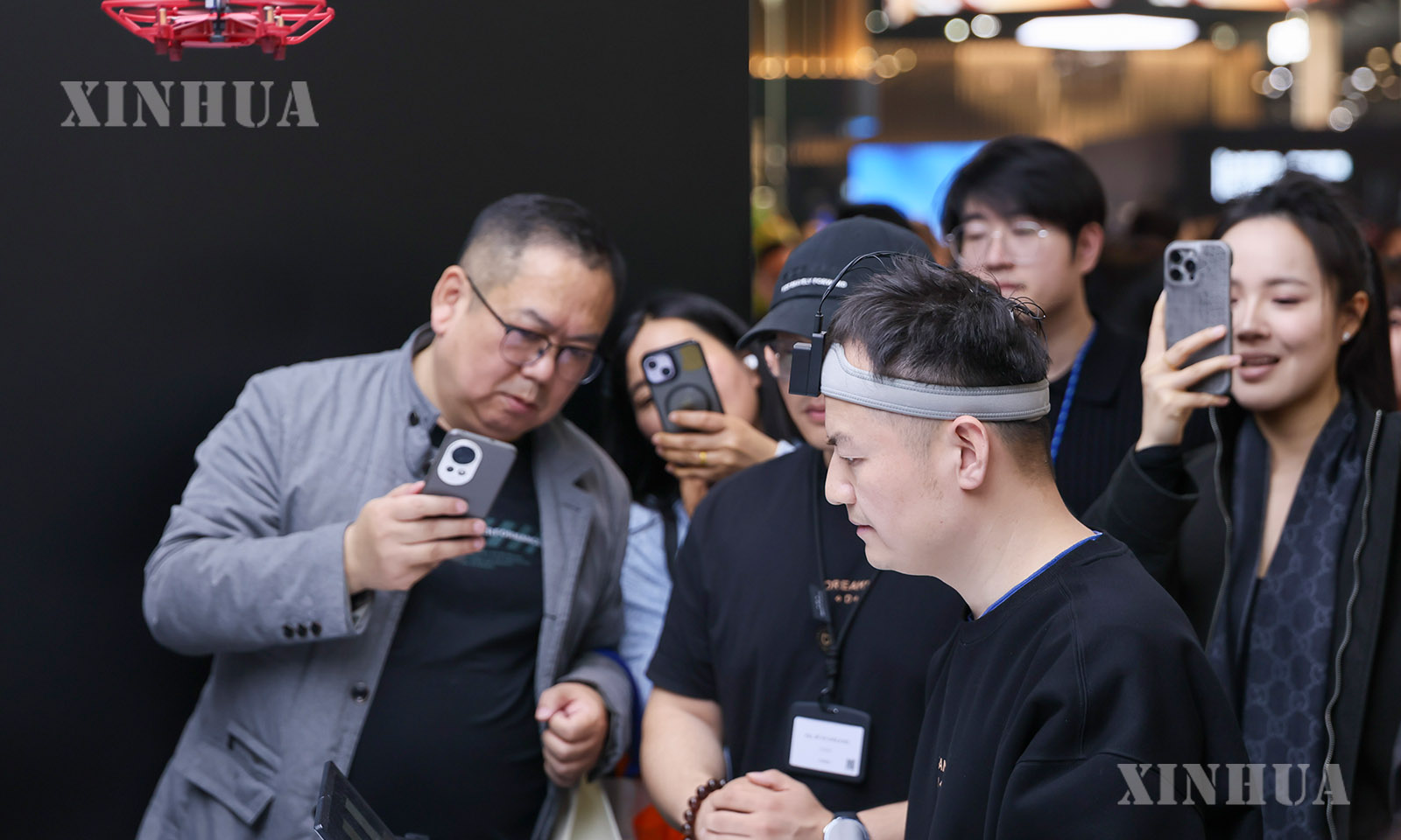 တရုတ်နိုင်ငံ ရှန်ဟိုင်း အရှေ့တိုင်းစီးပွားရေးပူးပေါင်းဆောင်ရွက်မှုဇုန် ပြခန်းဧရိယာတွင် စမတ်မျက်မှန်တပ်ဆင်၍ ယာဉ်ပျံ မြင်ကွင်းကျယ်ကို တွေ့ကြုံခံစားနေသော ပြပွဲလာရောက်ကြည့်ရှုသူကို ၂၀၂၆ ခုနှစ် မတ် ၁၂ ရက်က တွေ့ရစဉ် (ဆင်ဟွာ)