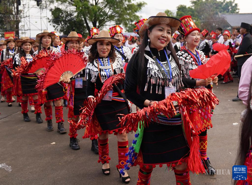 တရုတ်နိုင်ငံ ယူနန်ပြည်နယ် တက်ဟုန်းပြည်နယ်ခွဲ ယဉ်ကျန်းခရိုင်တွင် မနောပွဲတော် ပါဝင်တက်ရောက်သည့် ဒေသခံပြည်သူများနှင့် ခရီးသွားဧည့်သည်များ အတူကခုန်ရင်း ဝင်ရောက်လာနေသည်ကို ၂၀၂၆ ခုနှစ် မတ် ၁၄ ရက်က တွေ့ရစဉ် (ဆင်ဟွာ)