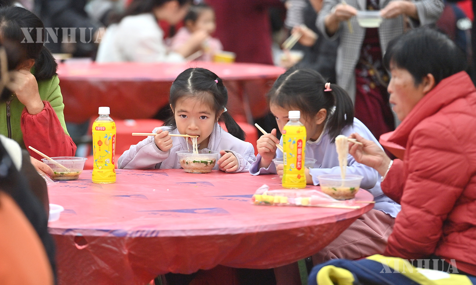 တရုတ်နိုင်ငံ ကွမ်ရှီးဒေသ ဟဲချီမြို့ တာ့ဟွ ယောင်လူမျိုး ကိုယ်ပိုင်အုပ်ချုပ်ခွင့်ရခရိုင် ကူကျန်းလမ်းမထက်ရှိ ဆန်းကျမြီးရှည်ဆိုင်တစ်ဆိုင်တွင် ပြုလုပ်ပြီးခါစ ဆန်းကျမြီးရှည်ကို ၂၀၂၆ မတ် ၂၁ ရက်က တွေ့ရစဉ် (ဆင်ဟွာ)
