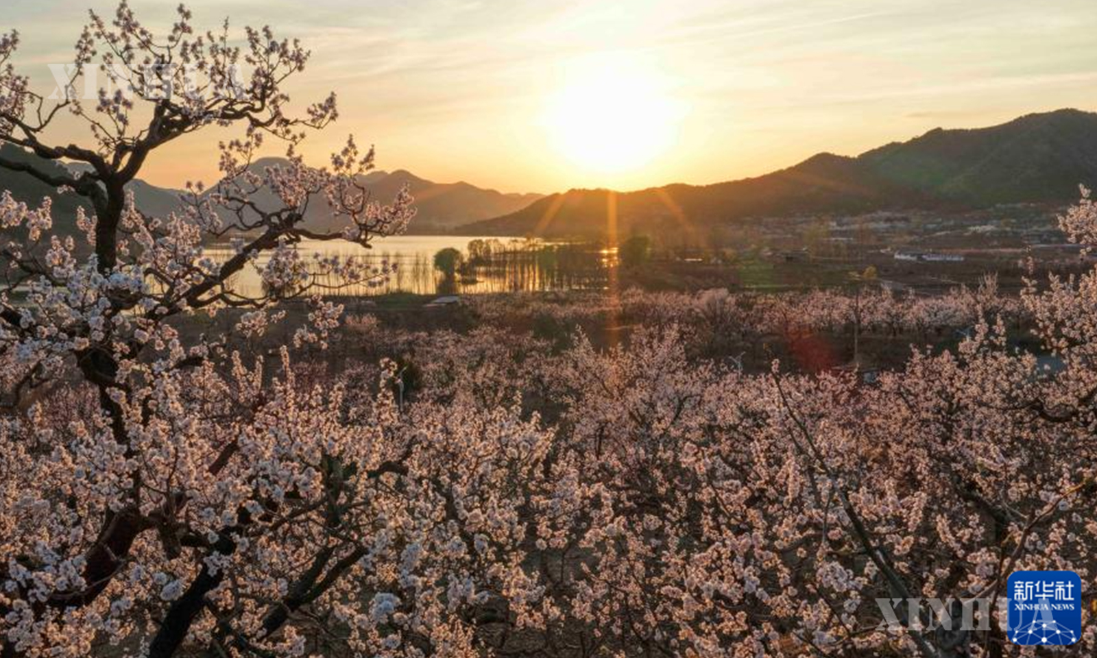 2、这是3月30日在河北省遵化市娘娘庄镇东小河村拍摄的花海(无人机照片)。新华社发(刘满仓摄)