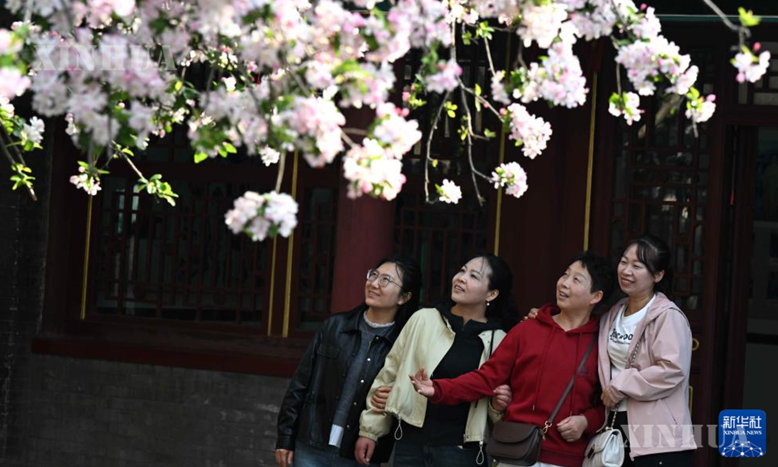 3、3月29日,游人在河北省石家庄市正定荣国府影视基地内赏花拍照。新华社发(陈其保摄)