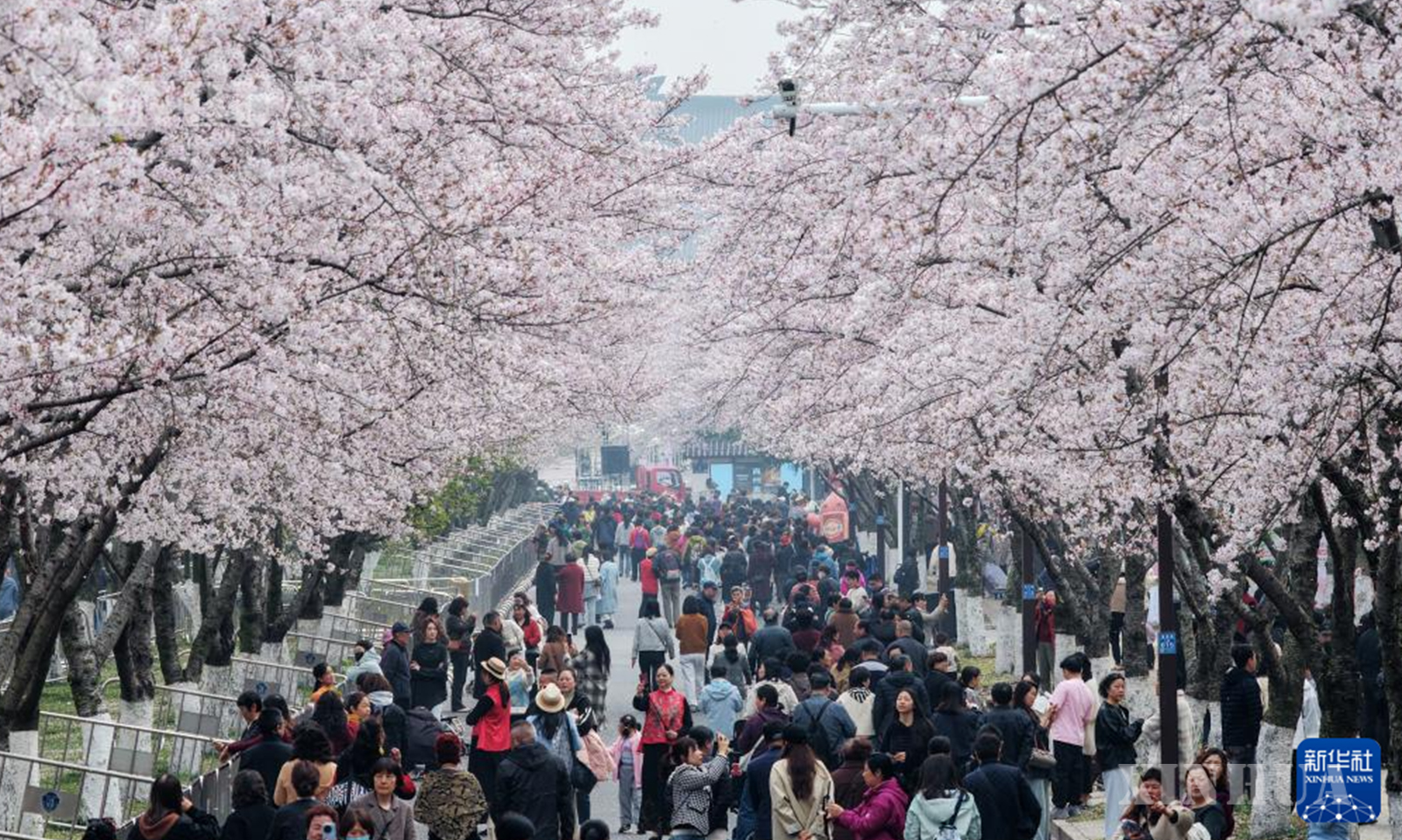 နွေဦးလေပြေလေး တိုက်ခတ်သွားချိန်တွင် ပန်းပေါင်းစုံ ပွင့်လန်းဝေဆာချိန်ပင်ဖြစ်သည်။ လူအများကလည်း နွေဦးရာသီတွင် ရှုခင်းရှုစားကာ ပန်းပင်လယ်များအကြား ဖြတ်သန်းသွားလာရင်း နွေဦးချိန်ခါ သက်ဝင်လှုပ်ရှားမှုနှင့် သာယာလှပမှုများကို စီးမြောခံစားလျက်ရှိသည်။ (Xinhua)