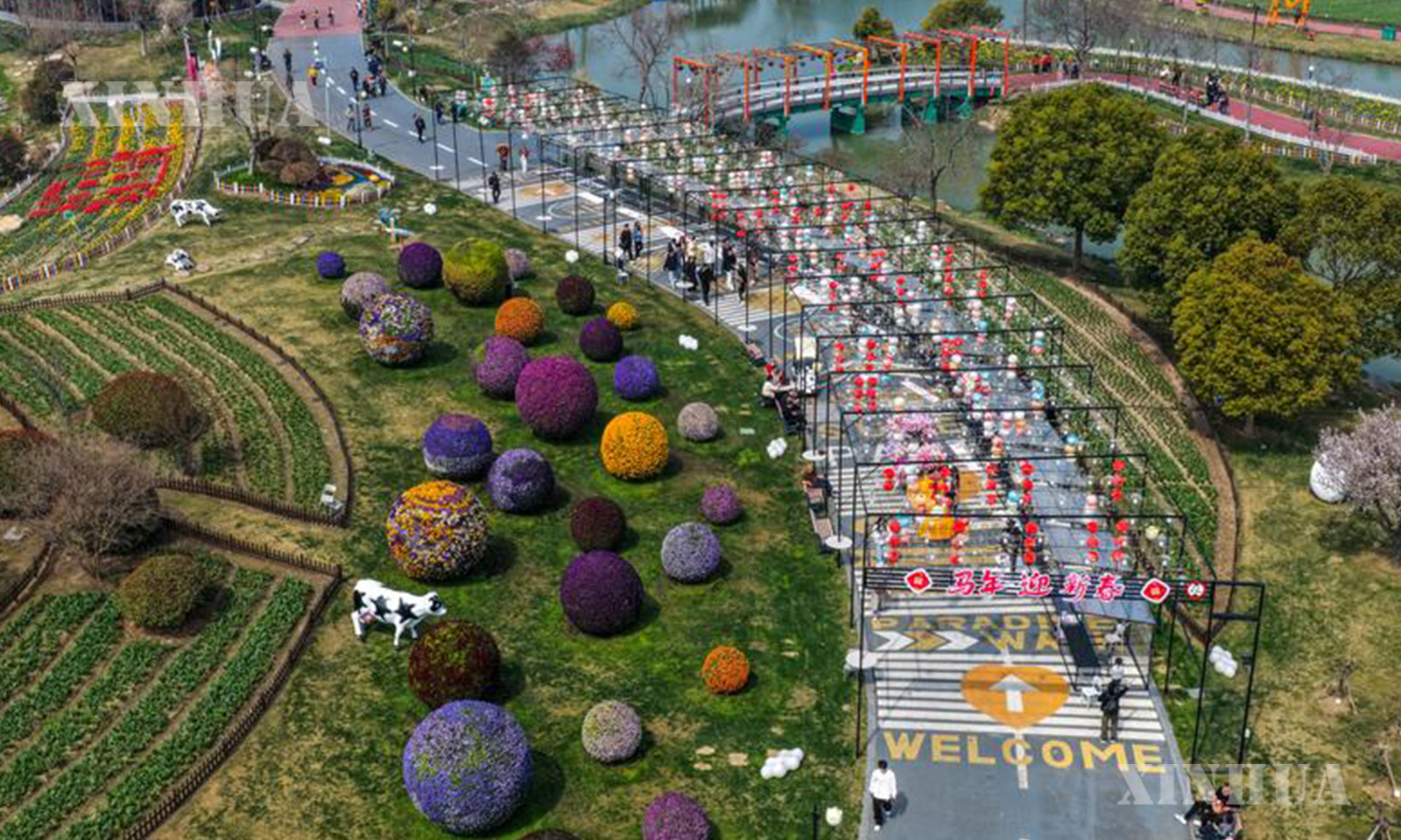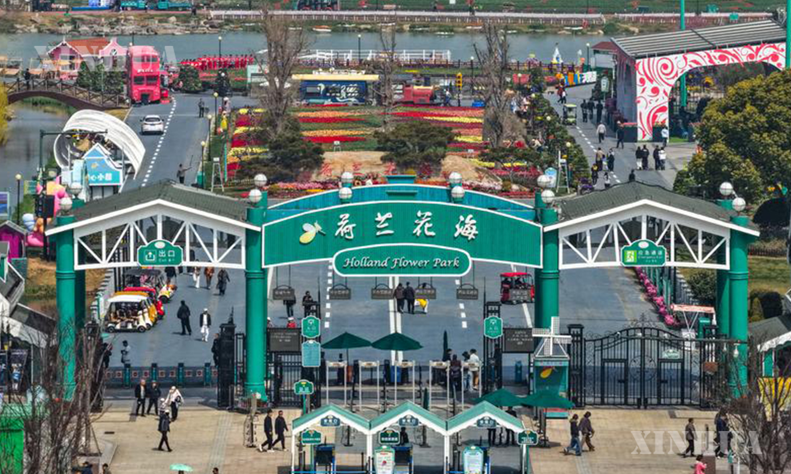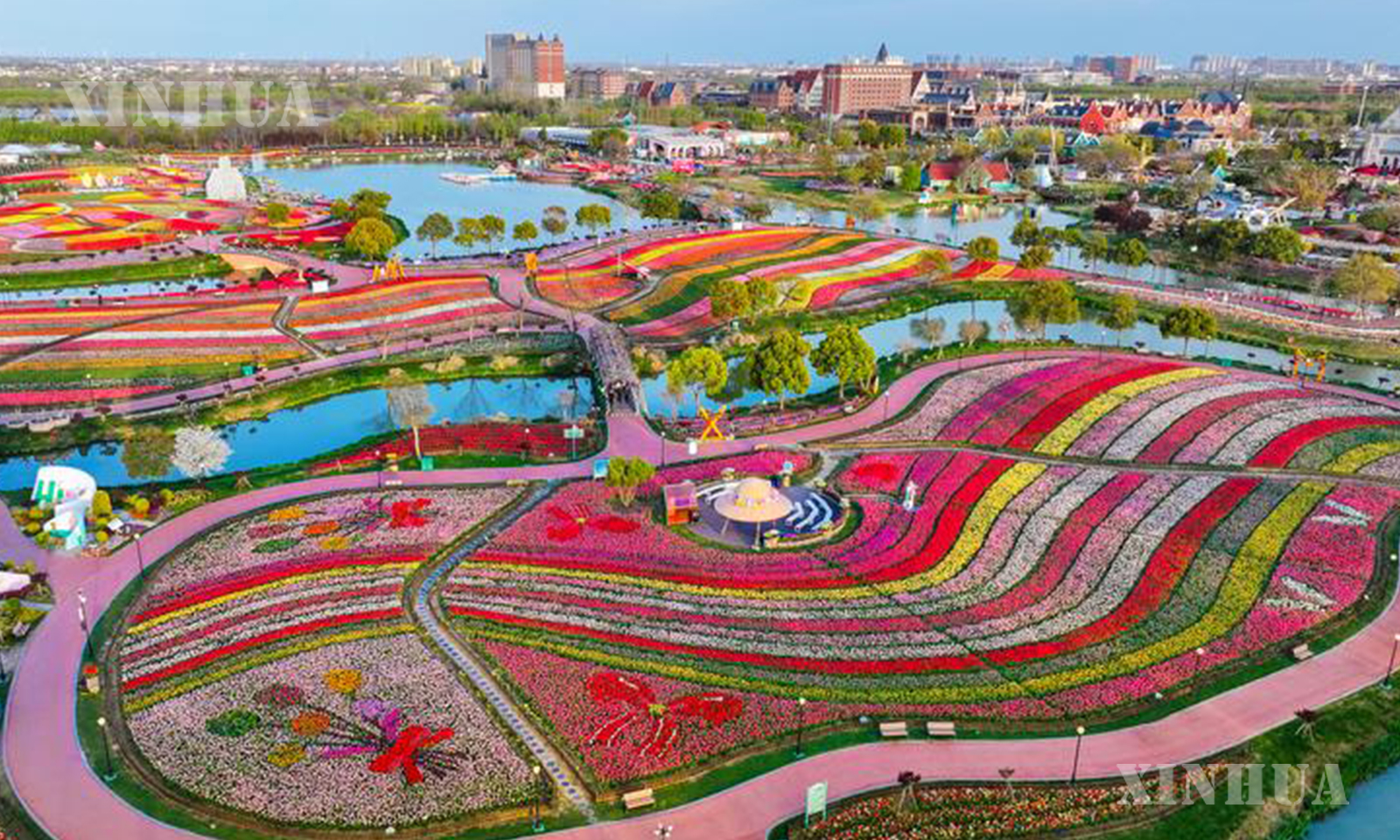 1. 这是盐城大丰荷兰花海景区(2026年4月7日摄,无人机照片)。 新华社发(单强 摄)