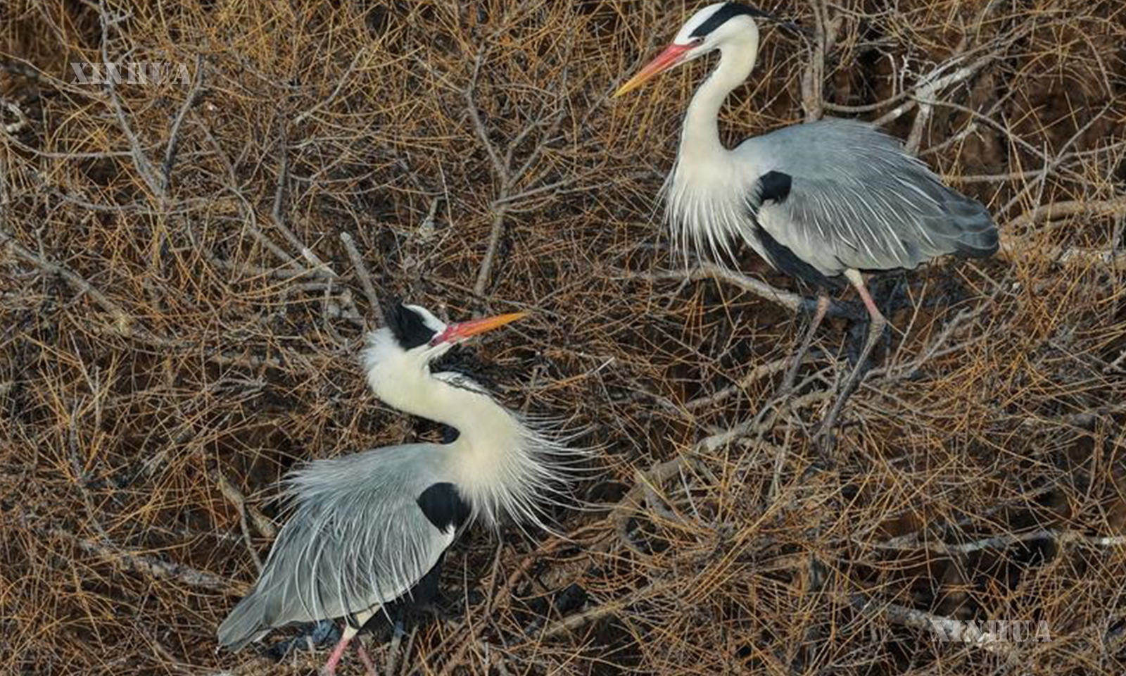 图说1:这是4月1日在黑龙江省同江市拍摄的苍鹭(无人机照片)。 新华社发(刘万平摄)
