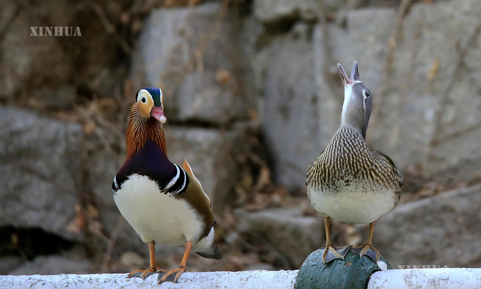 图说2:这是3月30日在哈尔滨市兆麟公园拍摄的一对野生鸳鸯。新华社发(张树摄)