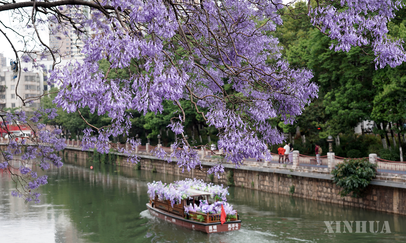 လတ်တလောရက်ပိုင်းတွင် တရုတ်နိုင်ငံ ယူနန်ပြည်နယ် ကူမင်းမြို့ ကျောက်ချန်ကျုံးလမ်း၊ ဖန်လုံမြစ်ကမ်းနံဘေးတွင် စိန်ပန်းပြာများ သူ့ထက်ငါအပြိုင် ဝေဆာဖူးပွင့်လျက်ရှိရာ မြို့သူ၊ မြိုသားနှင့် ခရီးသွားဧည့်သည်များစွာက လာရောက်လည်ပတ်ရှုစားပြီး ဓာတ်ပုံရိုက်ရင်း ခရမ်းပြာပန်းပင်လယ်တွင် ဆုံစည်းကြရန် ဆွဲဆောင်လျက်ရှိသည်။ (Xinhua)