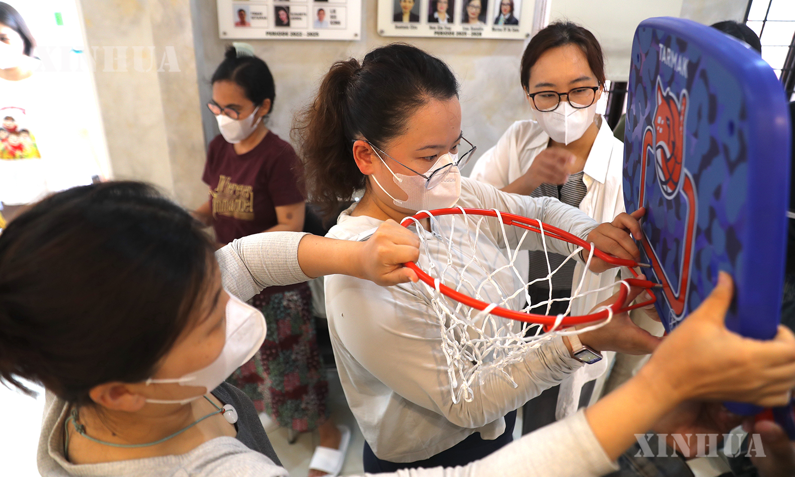 အင်ဒိုနီးရှားနိုင်ငံ ဂျကာတာမြို့တွင် ရှီခိုင်ရှင်း (ဝဲဘက်) က ဒေသန္တရကလေးငယ်များ ကင်ဆာရောဂါစင်တာမှ ကလေးငယ်များနှင့်အတူ ပုံဆွဲနေသည်ကို ၂၀၂၆ ခုနှစ် ဧပြီ ၁၉ ရက်က တွေ့ရစဉ် (ဆင်ဟွာ)
