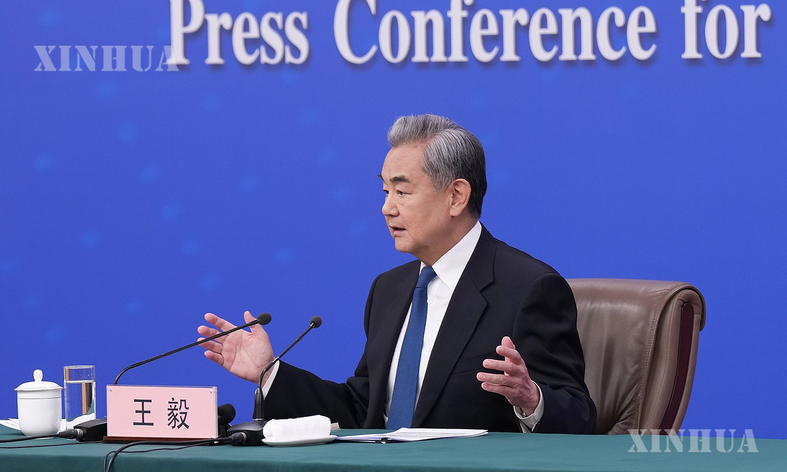 1.3月8日,十四届全国人大四次会议在北京梅地亚中心新闻发布厅举行记者会。中共中央政治局委员、外交部长王毅就“中国外交政策和对外关系”相关问题回答中外记者提问。新华社记者 王曦 摄