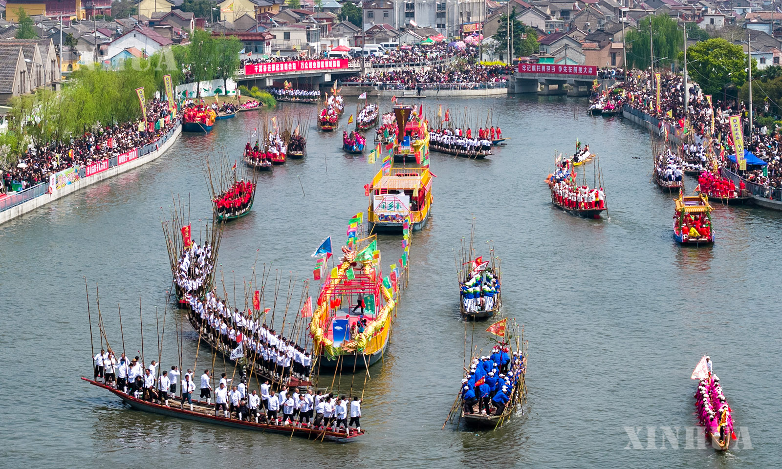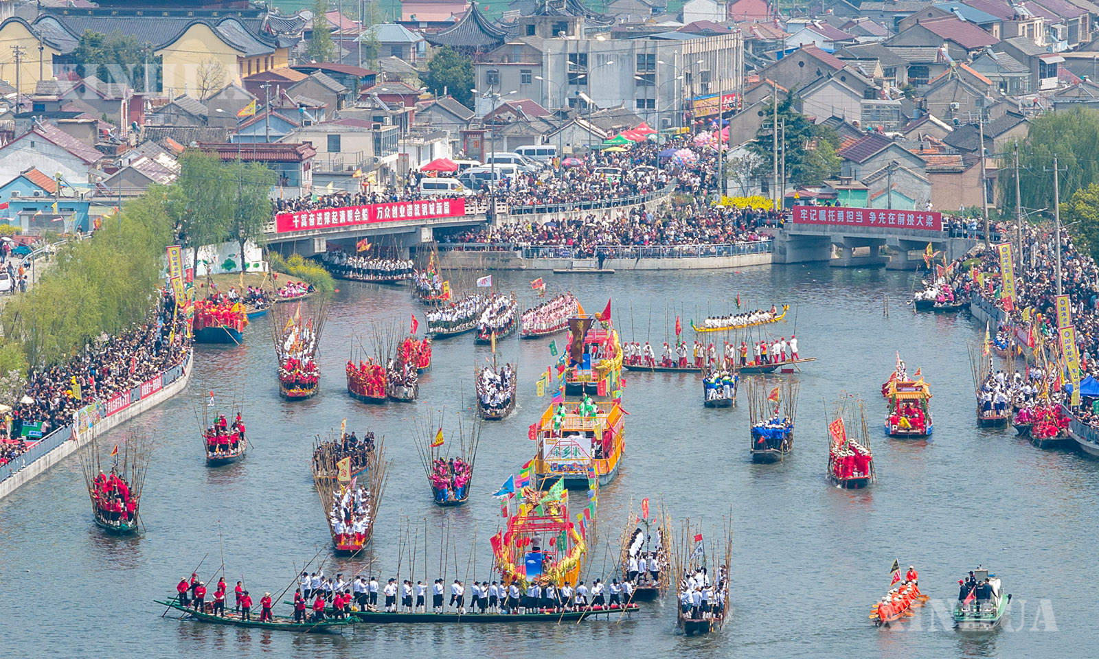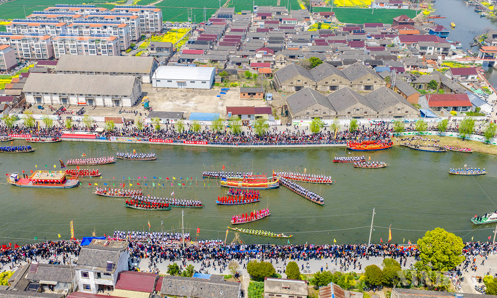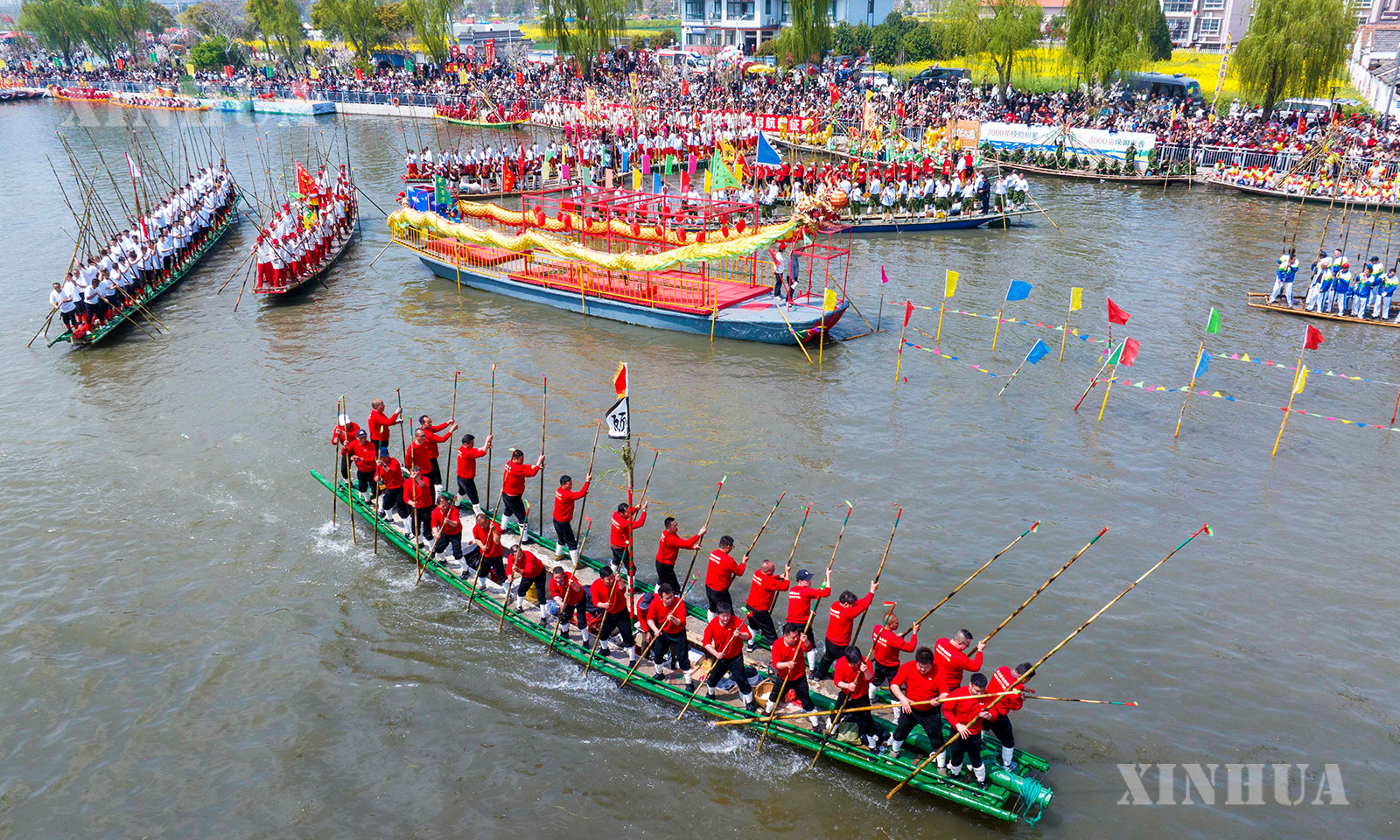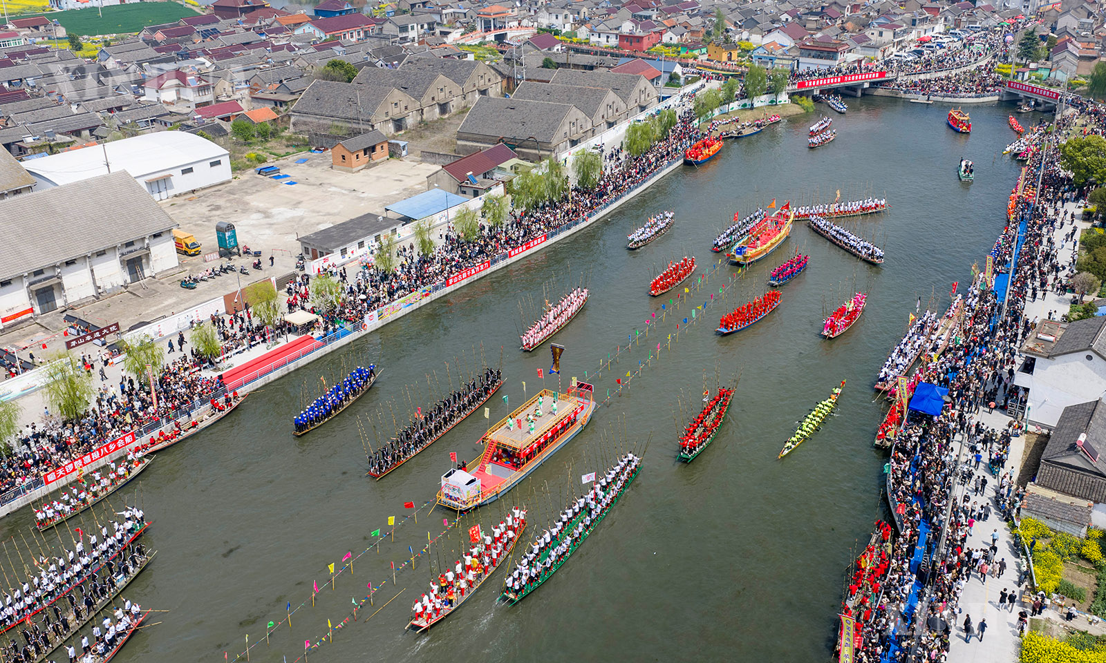 4月5日,江苏省兴化市举行一年一度的茅山会船盛会。船只和选手齐聚茅山西大河,参加竞技和表演。茅山会船始于南宋,2014年被列入国家级非物质文化遗产名录。