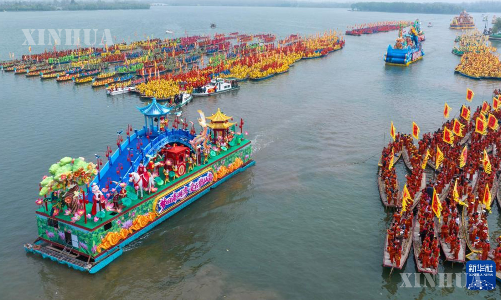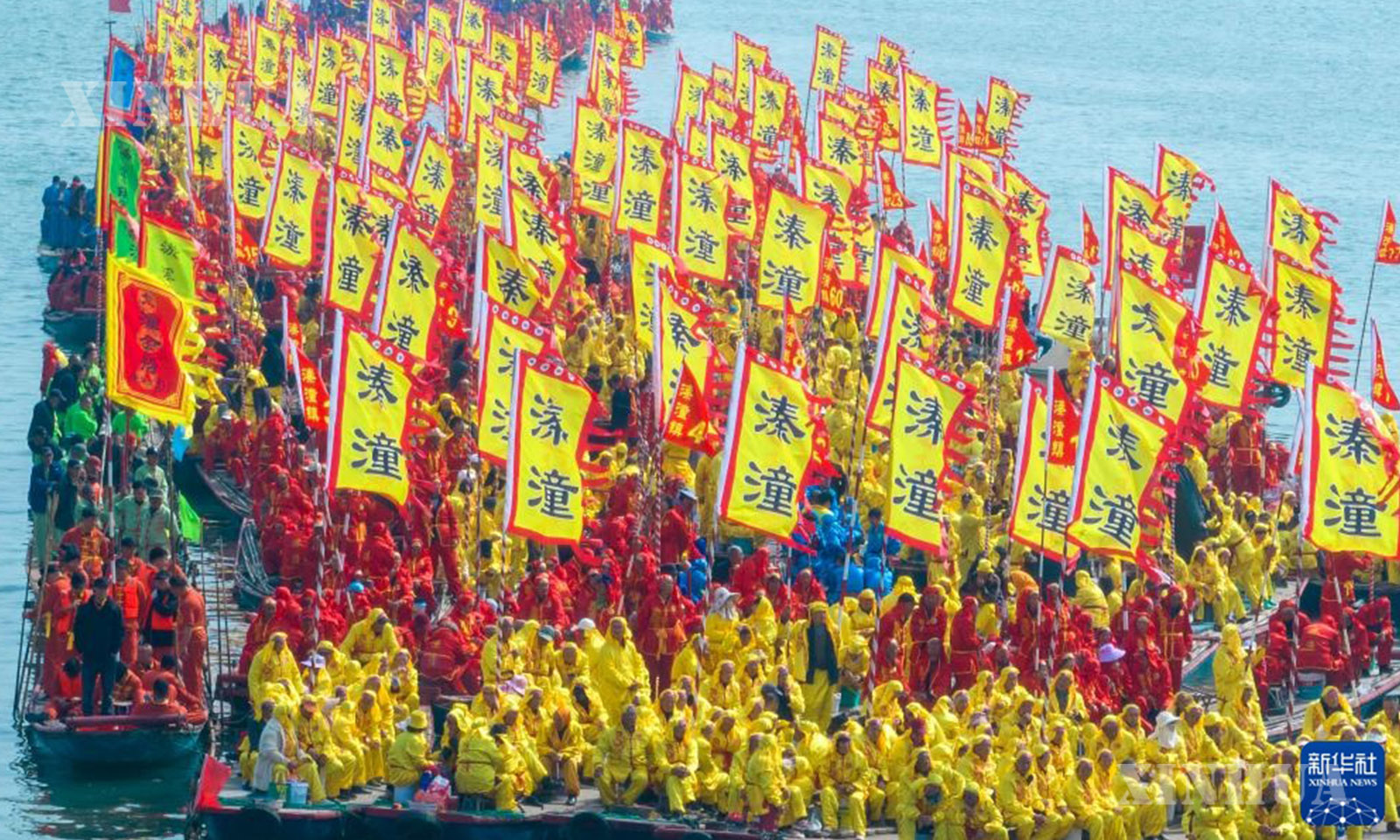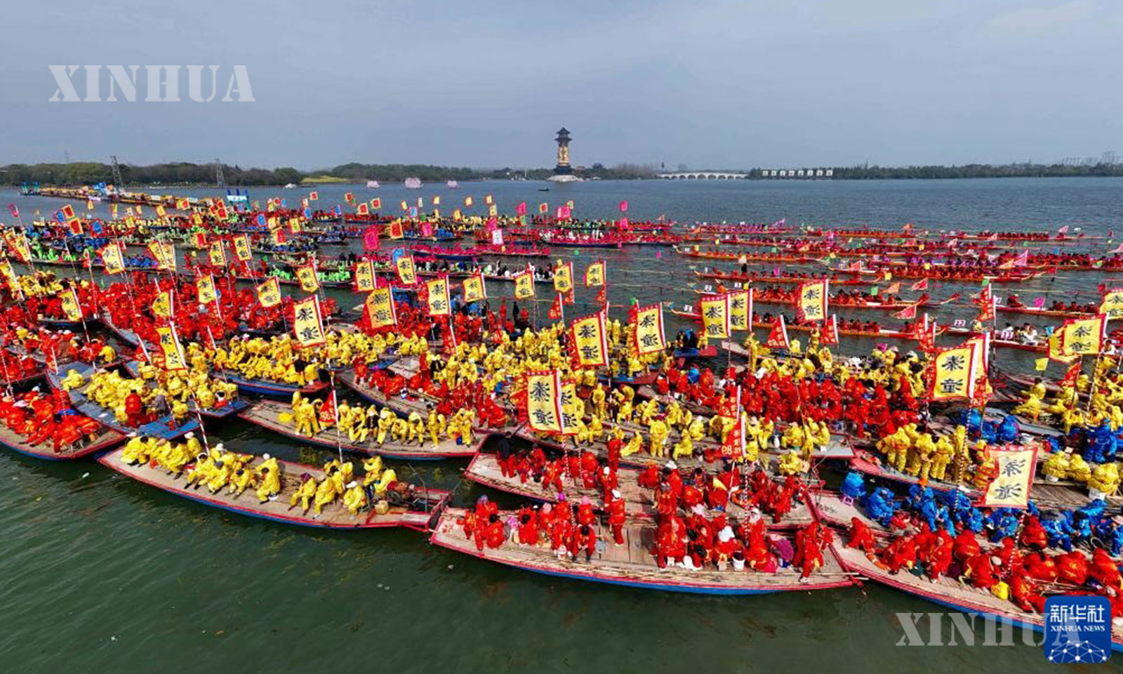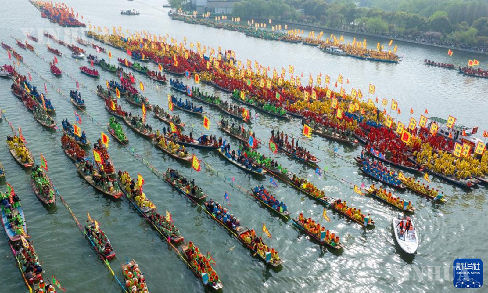 4月6日,2026年泰州姜堰溱潼会船节在江苏省泰州市姜堰区溱湖国家湿地公园开幕,数百条各式船只和上万名会船选手飞篙走桨,奋勇争先,演绎历久弥新的民俗画卷。