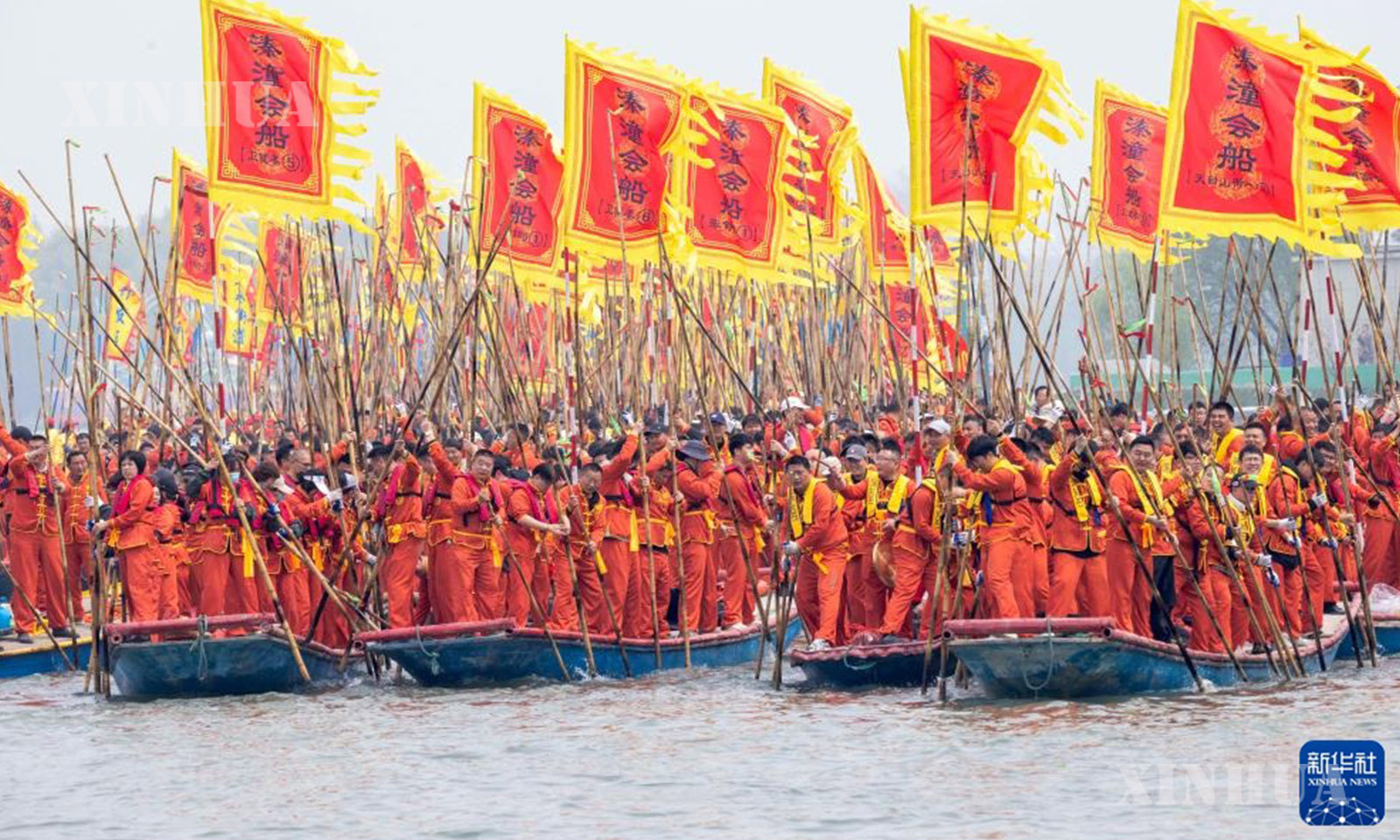 4月6日,2026年泰州姜堰溱潼会船节在江苏省泰州市姜堰区溱湖国家湿地公园开幕,数百条各式船只和上万名会船选手飞篙走桨,奋勇争先,演绎历久弥新的民俗画卷。