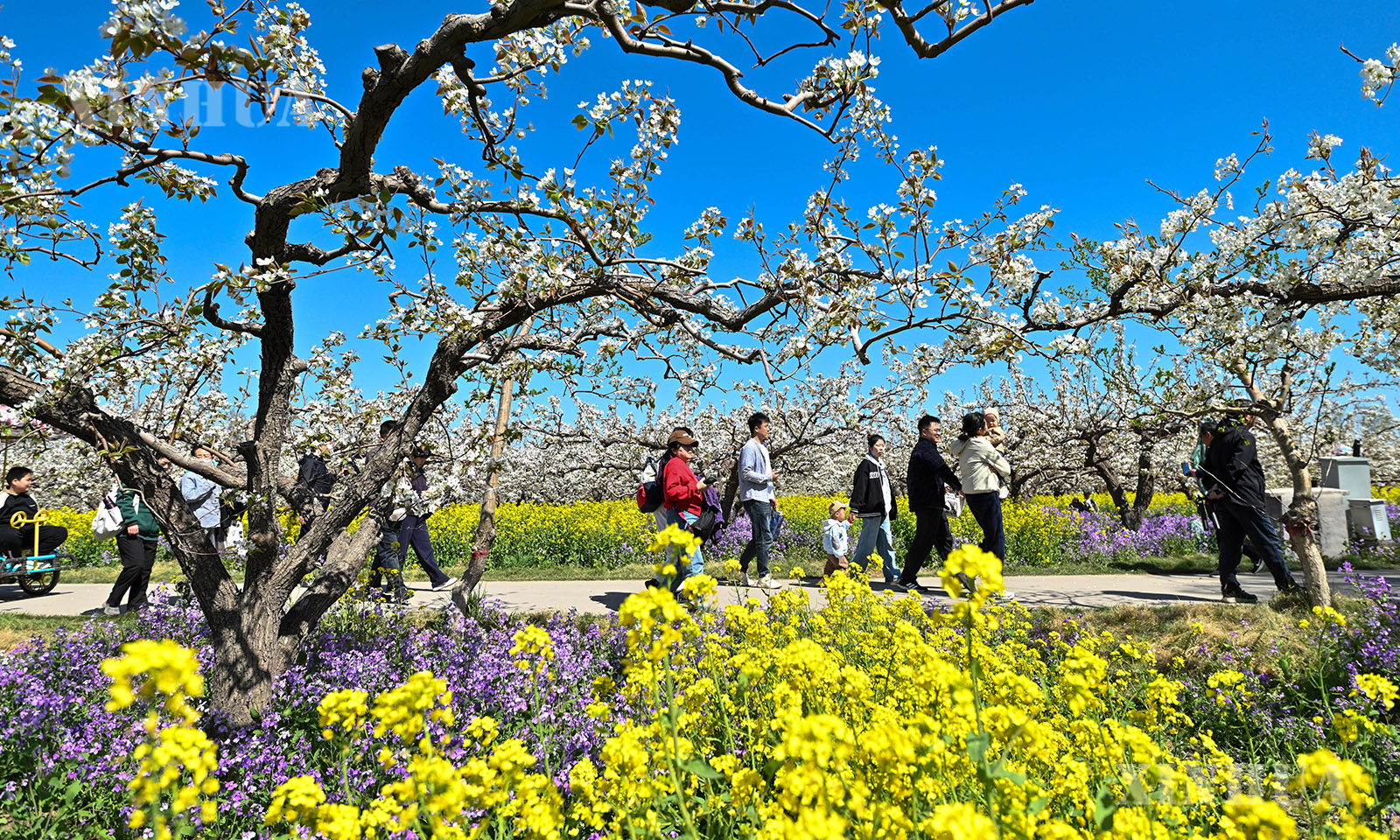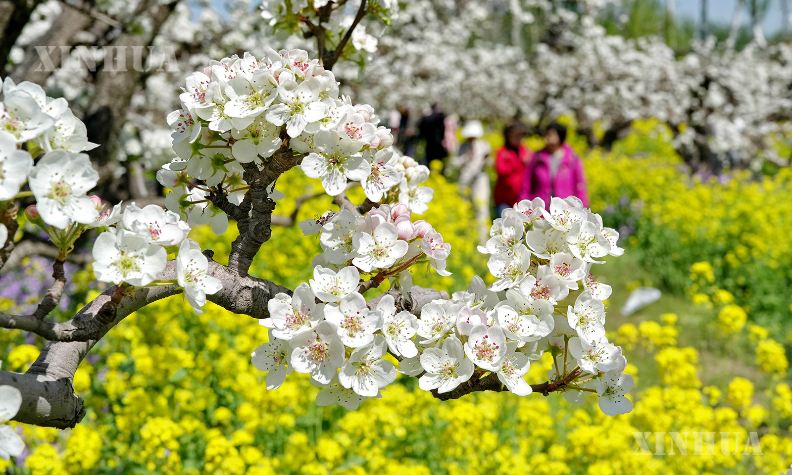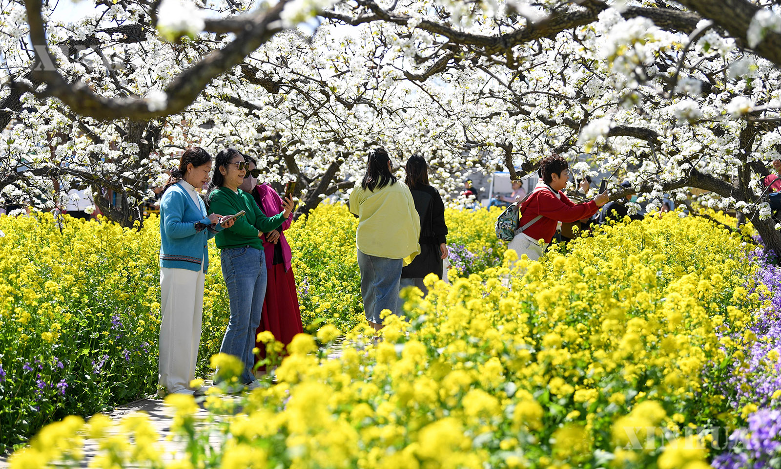近日,河北省晋州市17万亩梨树迎来盛花期,梨花与田间连片盛开的油菜花相映生辉,吸引大量游客前来赏花踏青,休闲度假。