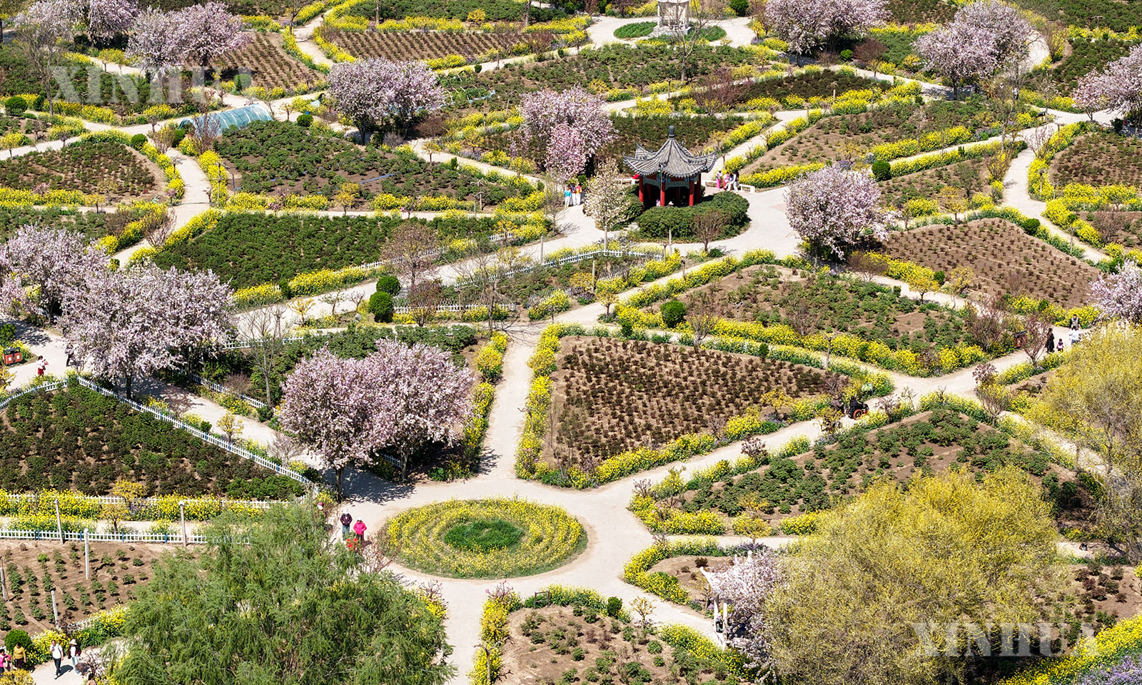 တရုတ်နိုင်ငံ ဟဲပေပြည်နယ် ကျင့်ကျိုးမြို့ ကျိုးကျားကျွမ်းရွာ အမှတ် ၉ ထုတ်လုပ်ရေးအဖွဲ့ သစ်တော်ဥယျာဉ်အတွင်း၌ ပန်းရှုစားနေသော ခရီးသွားဧည့်သည်များကို ၂၀၂၆ ခုနှစ် ဧပြီ ၆ ရက်က တွေ့ရစဉ် (ဆင်ဟွာ)