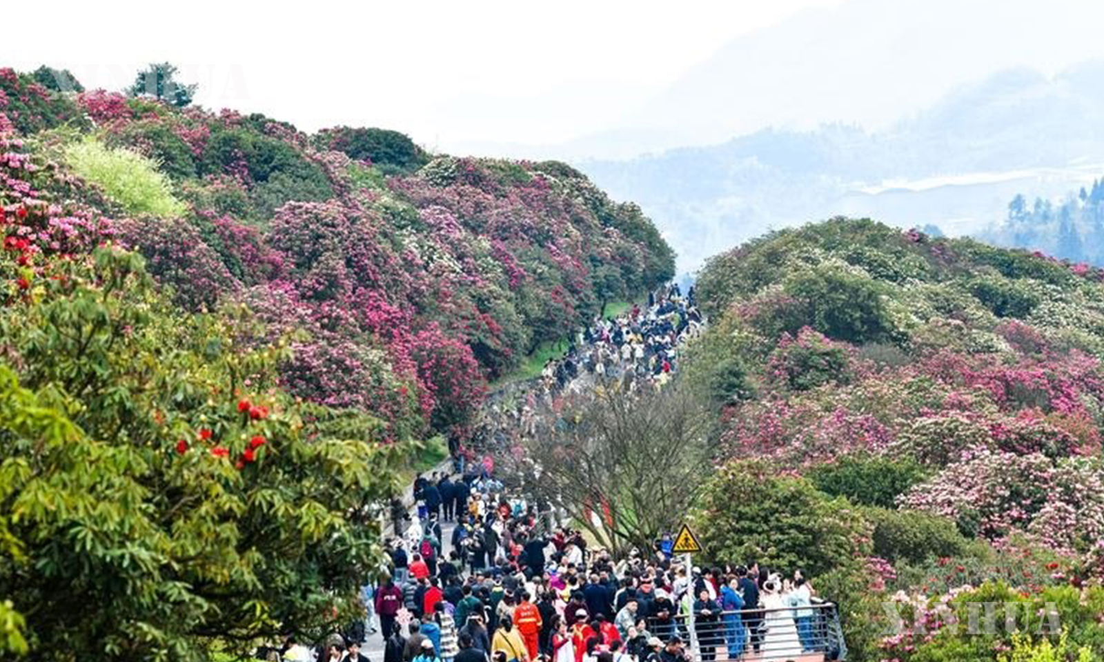 图说1:游人如织的贵州百里杜鹃管理区普底景区(4月1日摄)。 新华社记者 杨文斌 摄