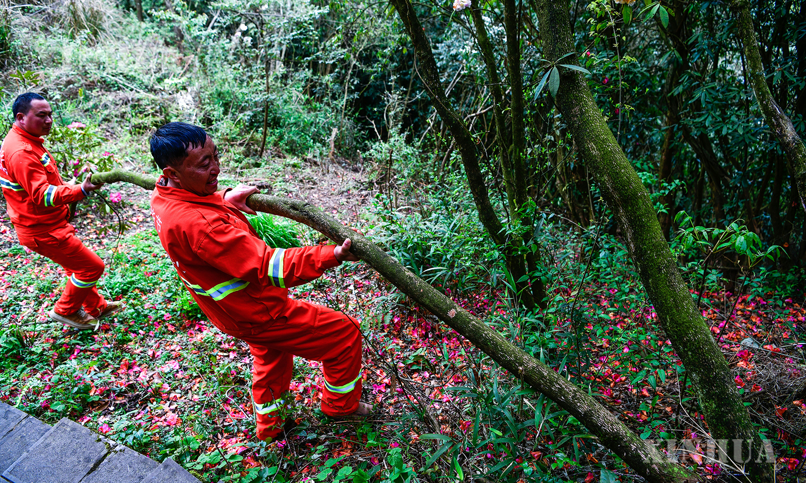 ၂၀၀၈ ခုနှစ်မှစ၍ ပိုင်လီ တောင်ဇလပ်ပင်စီမံခန့်ခွဲရေးကော်မတီသည် တောမီးကာကွယ်ရေးဝန်ထမ်း ၄၅ ဦးကို တစ်နှစ်ပတ်လုံး ခန့်အပ်ထားပြီး တောတွင်း မီးအန္တရာယ်ဖြစ်နိုင်ခြေများ စစ်ဆေးရှာဖွေခြင်း၊ သစ်တော ပိုးမွှားနှင့်ရောဂါများ ကာကွယ်ထိန်းချုပ်ခြင်း၊ တရားမဝင် တူးဖော်ခုတ်ယူမှုများ တားဆီးခြင်း စသည့် လုပ်ငန်းများကို တာဝန်ယူ ဆောင်ရွက်ကြသည်။ ၁၈ နှစ်ကြာကာလတွင် လေပြင်းတိုက်ခတ်၍ မိုးရွာသည်ဖြစ်စေ၊ ရာသီဥတုပြင်းထန်စွာ အေးခဲသည်ဖြစ်စေ၊ ချစ်ချစ်တောက် ပူပြင်းသည်ဖြစ်စေ တောမီးကာကွယ်ရေးအဖွဲ့ဝင်များသည် နေ့စဉ် သစ်တောနှင့် တောင်တန်းများအတွင်း တာဝန်ယူကင်းလှည့်စစ်ဆေးခဲ့ကြပြီး “ကမ္ဘာမြေ၏ ရောင်စုံဖဲကြိုး၊ ကမ္ဘာ့ပန်းဥယျာဉ်” ဟု ခေါ်ဆိုခံရသော ရှုခင်းသာဧရိယာတွင် တောင်ဇလပ်ပန်းများ၏ ပွင့်လန်းမှုကို ကာကွယ်စောင့်ရှောက်လျက်ရှိသည်။ (Xinhua)