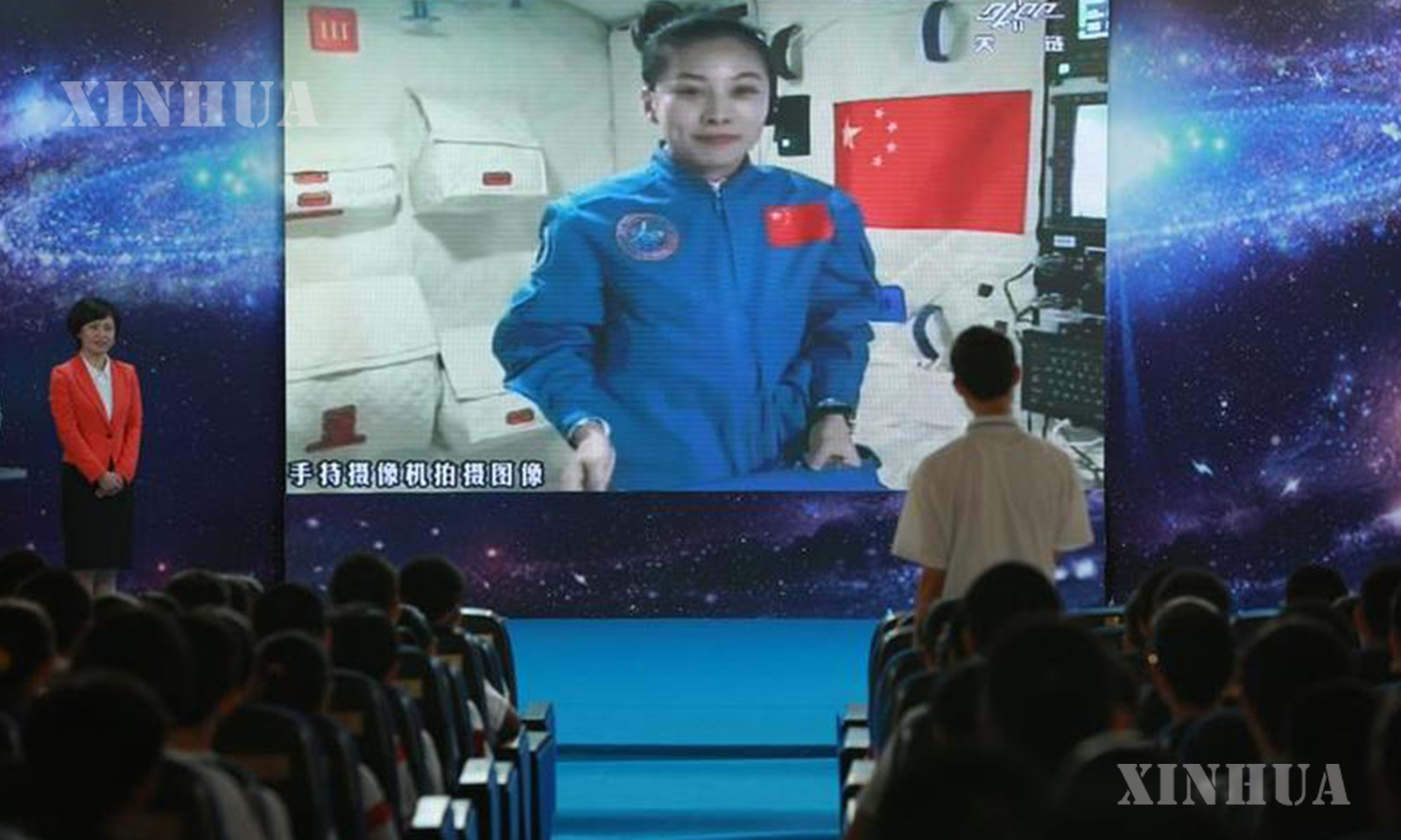 ရှန်ကျိုး-၁၀ အာကာသယာဉ်မှူး သုံးဦးအနက် တစ်ဦးဖြစ်သော အမျိုးသမီးအာကာသယာဉ်မှူး ဝမ်ရာဖိန်က တရုတ်နိုင်ငံ ပေကျင်းမြို့ရှိ Renmin University of China ၏ မိတ်ဖက်အထက်တန်းကျောင်းမှ ကျောင်းသားတစ်ဦး၏ မေးခွန်းများကို ၂၀၁၃ ခုနှစ် ဇွန် ၂၀ ရက်က ဖြေကြားနေစဉ် (ဆင်ဟွာ)