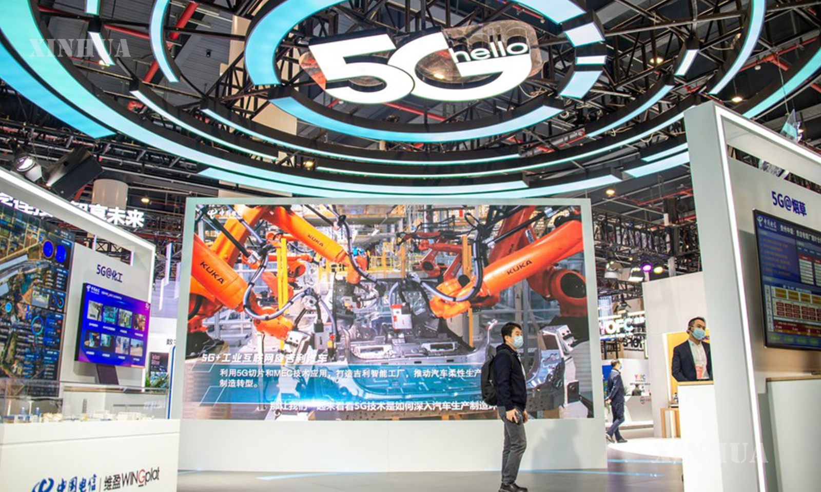 တရုတ်နိုင်ငံအလယ်ပိုင်း၊ ဟူပေပြည်နယ်၊ ဝူဟန့်မြို့၌ ပြုလုပ်ခဲ့သည့် တရုတ် 5G+စက်မှု လုပ်ငန်းဆိုင်ရာအင်တာနက်ကွန်ဖရင့် ကျင်းပသောနေရာကို ၂၀၂၁ ခုနှစ် နိုဝင်ဘာ ၂၀ ရက်က တွေ့ရစဥ် (ဆင်ဟွာ)