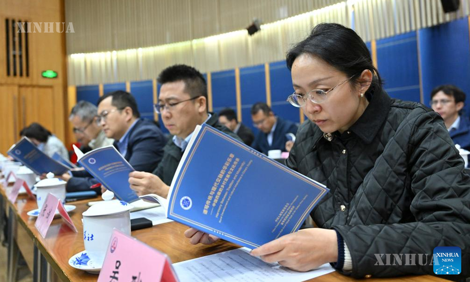 တရုတ်နိုင်ငံ မြို့တော် ပေကျင်းတွင် ၂၀၂၅ ခုနှစ် အောက်တိုဘာ ၁၆ ရက်၌ ကျင်းပသော ပညာရှင်များ ဆွေးနွေးဖလှယ်ပွဲအတွင်း “အစဉ်အလာနှင့် ခေတ်မီမှုကြား သဟဇာတဖြစ်ခြင်း – တရုတ်နိုင်ငံ ရှီးဇန့်ဒေသရှိ ကျေးလက်ဖွံ့ဖြိုးတိုးတက်မှုနှင့် ယဉ်ကျေးမှုအမွေဆက်ခံခြင်း” ဟူသော Think Tank အစီရင်ခံစာမိတ္တူများ ဖတ်ကြားနေသည့် ကိုယ်စားလှယ်များကို တွေ့ရစဉ် (ဆင်ဟွာ)