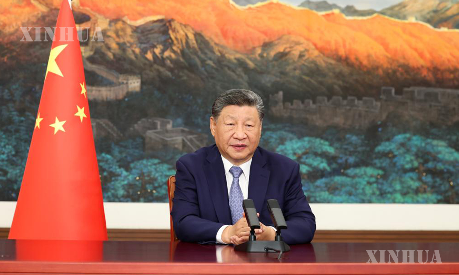Chinese President Xi Jinping delivers a video speech to the United Nations Climate Summit 2025 held in New York on Sept. 24, 2025. (Xinhua/Huang Jingwen)
