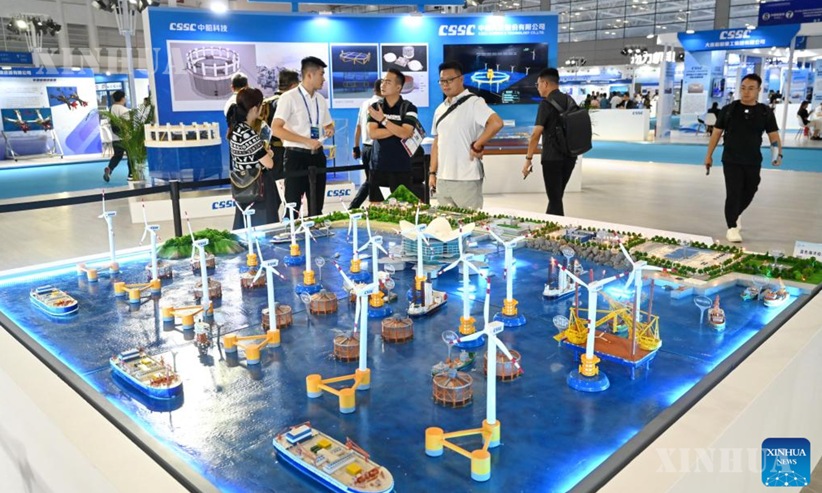 တရုတ်နိုင်ငံ အရှေ့တောင်ပိုင်း ဖူကျန့်ပြည်နယ် ဖူကျိုးမြို့၌ ၂၀၂၅ ခုနှစ် ကမ္ဘာ့ရေကြောင်းပစ္စည်းညီလာခံ၌ ကမ်းလွန်လေစွမ်းအင်ပစ္စည်းပြပွဲဧရိယာအား လာရောက်လည်ပတ်ကြည့်ရှုကြသူများကို ၂၀၂၅ ခုနှစ် အောက်တိုဘာ ၁၆ ရက်က တွေ့ရစဉ် (ဆင်ဟွာ)