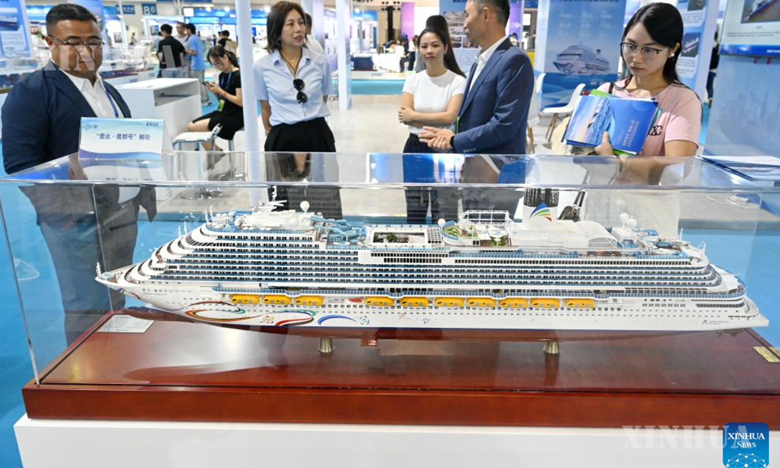 Participants view a cruise ship model at the World Maritime Equipment Conference 2025 in Fuzhou, southeast China’s Fujian Province, on Oct. 16, 2025. (Xinhua/Zhou Yi)