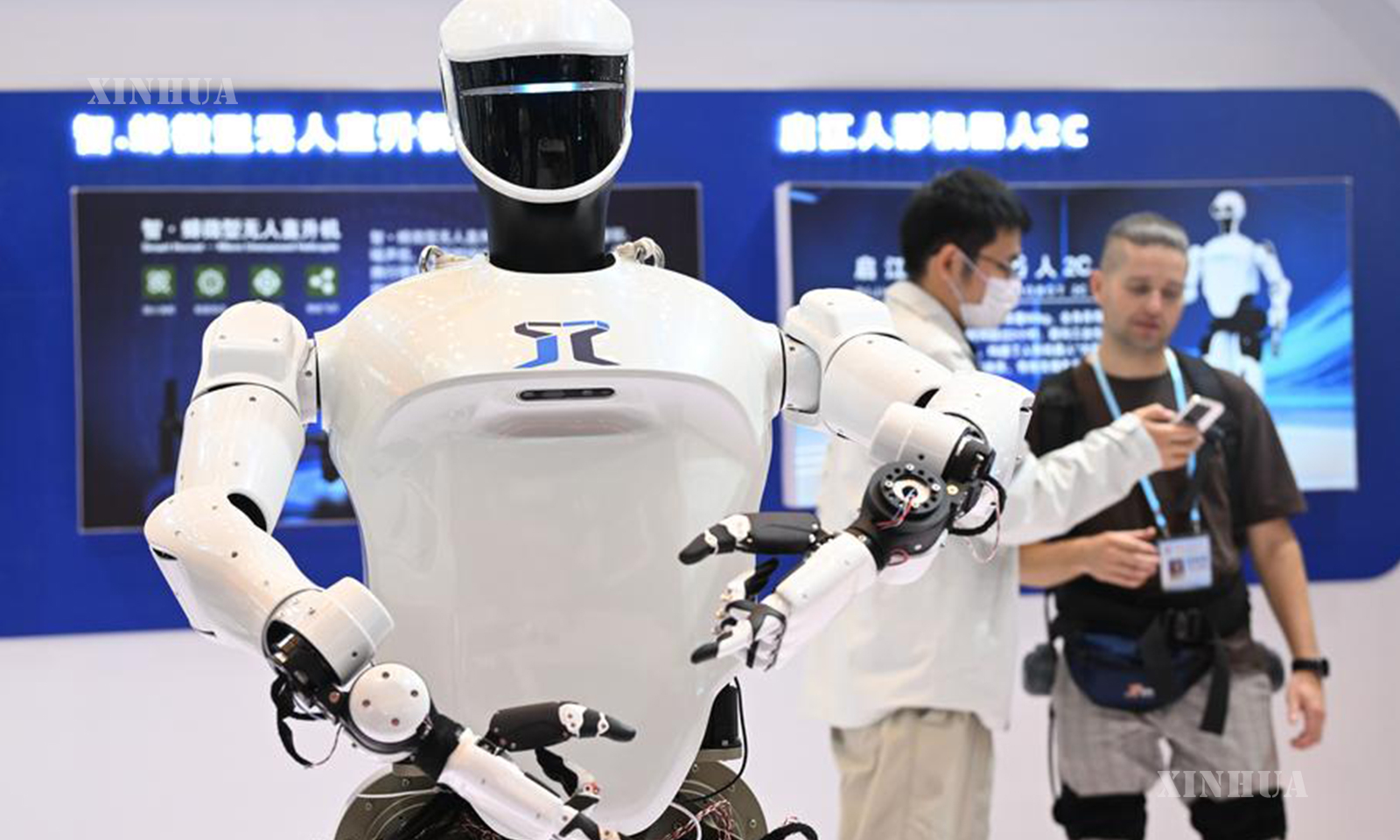 တရုတ်နိုင်ငံ တောင်ပိုင်း ကွမ်တုန်းပြည်နယ် ကွမ်ကျိုးမြို့တွင် ၁၃၈ ကြိမ်မြောက် တရုတ်ပို့ကုန်သွင်းကုန်ပြပွဲ (ကွမ်ကျိုးကုန်စည်ပြပွဲ)၊ ဝန်ဆောင်မှုစက်ရုပ်များဇုန်တွင် လူပုံစံတူစက်ရုပ် တစ်ရုပ်ကို ၂၀၂၅ ခုနှစ် အောက်တိုဘာ ၁၅ ရက်က တွေ့ရစဉ် (ဆင်ဟွာ)