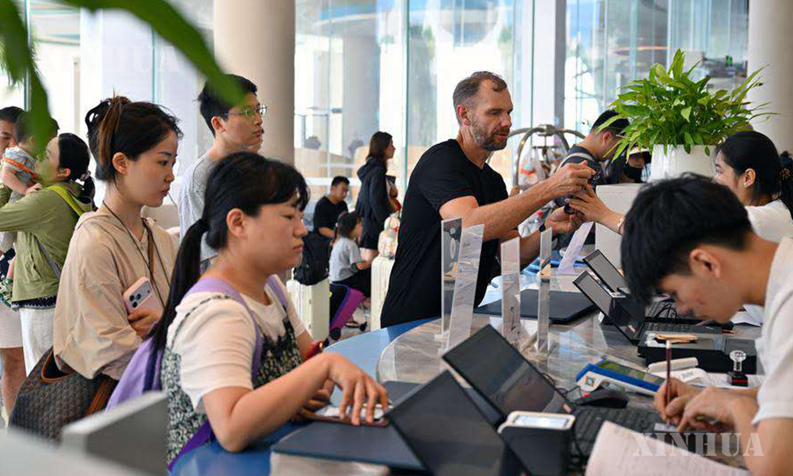 Tourists check in and out at a hotel in Lingshui Li Autonomous County in south China’s Hainan Province, Oct. 18, 2025. (Xinhua/Guo Cheng)
