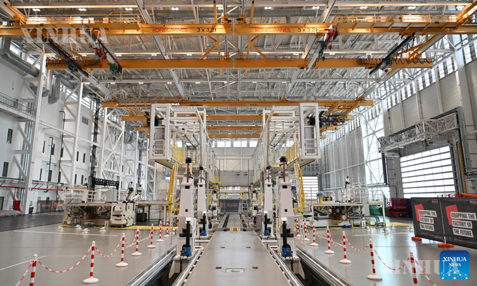 Photo 2: This photo shows Airbus’ second Final Assembly Line (FAL) for A320 family aircraft in Tianjin, north China, Oct. 22, 2025. (Xinhua/Sun Fanyue)