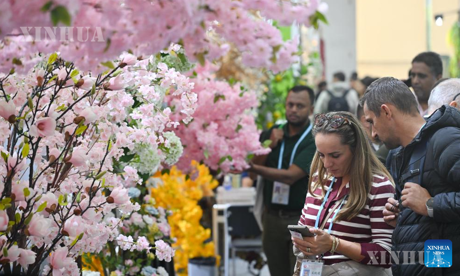 Photo (2) Foreign purchasers view a booth of artificial flowers during the 138th edition of the China Import and Export Fair (Canton Fair) in Guangzhou, south China’s Guangdong Province, Oct. 23, 2025. (Xinhua/Deng Hua)