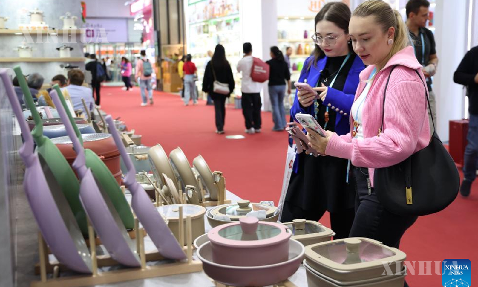Photo (3) A purchaser views a booth of decorations during the 138th edition of the China Import and Export Fair (Canton Fair) in Guangzhou, south China’s Guangdong Province, Oct. 23, 2025. (Xinhua/Deng Hua)